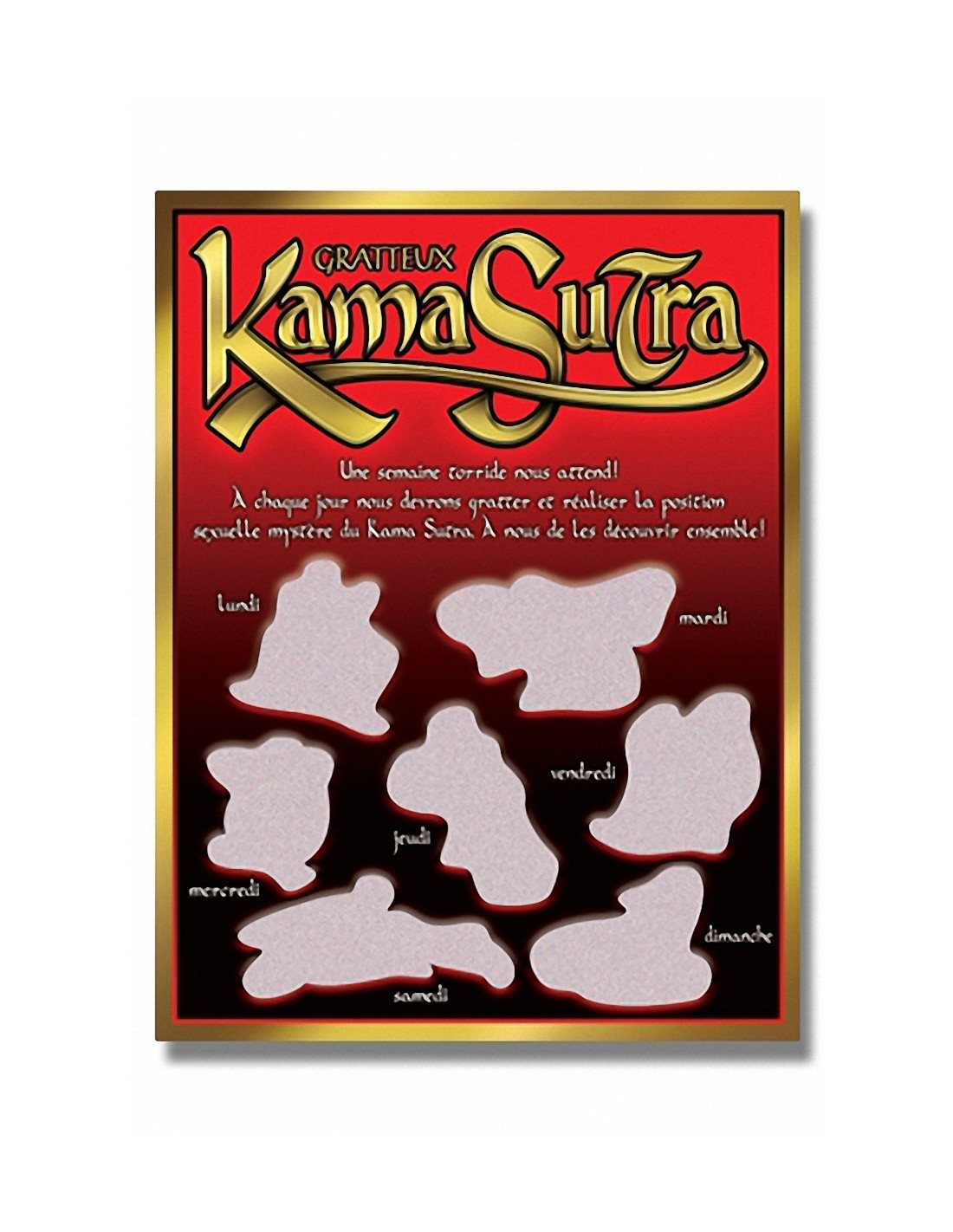 Avec la carte Kama Sutra, une semaine torride attend votre couple: grattez tous les jours une case et réalisez la position sexuelle mystère du Kama Sutra.