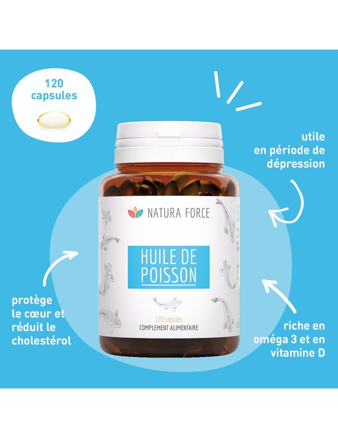 Huile de poisson Oméga 3 - capsules - Natura Force