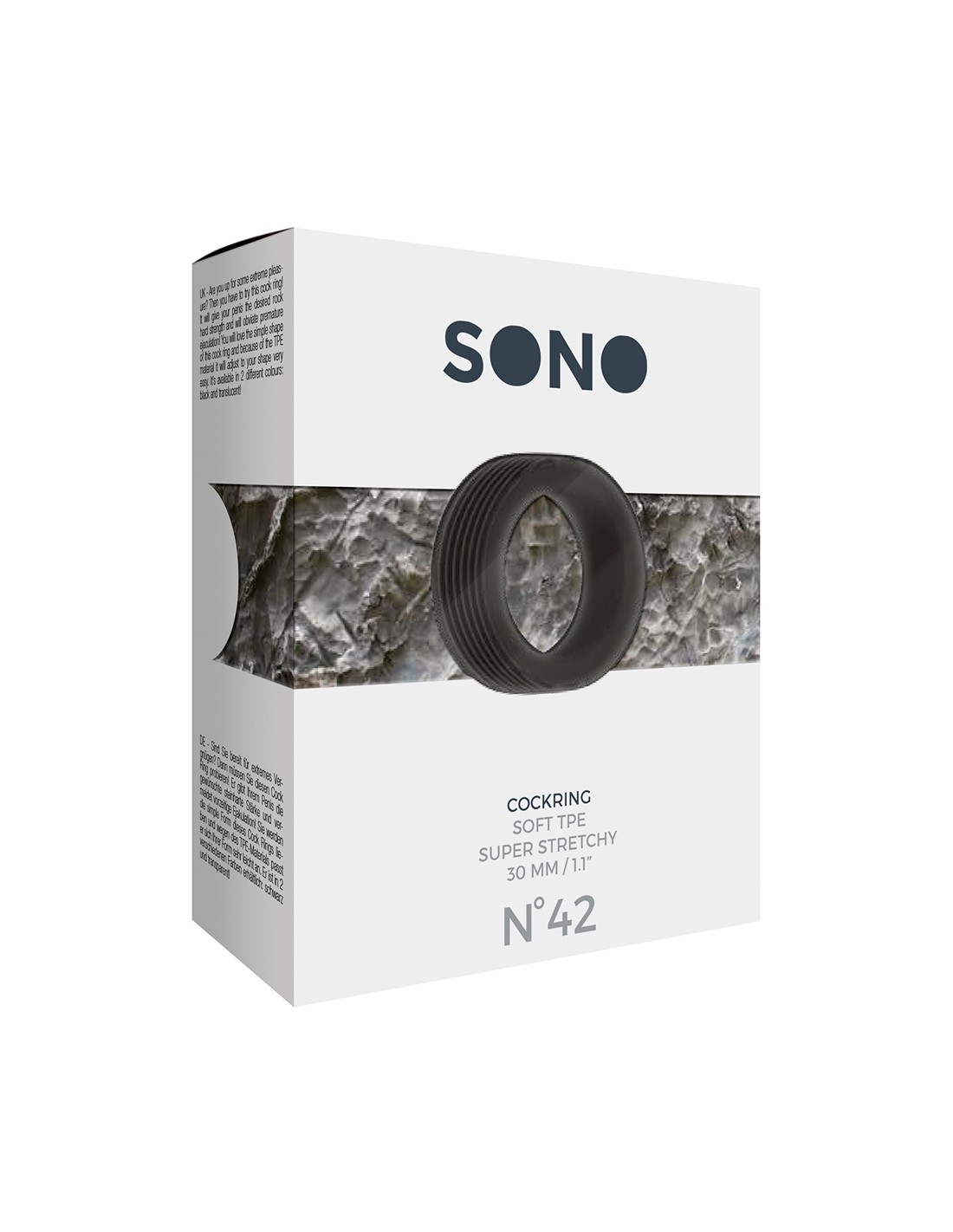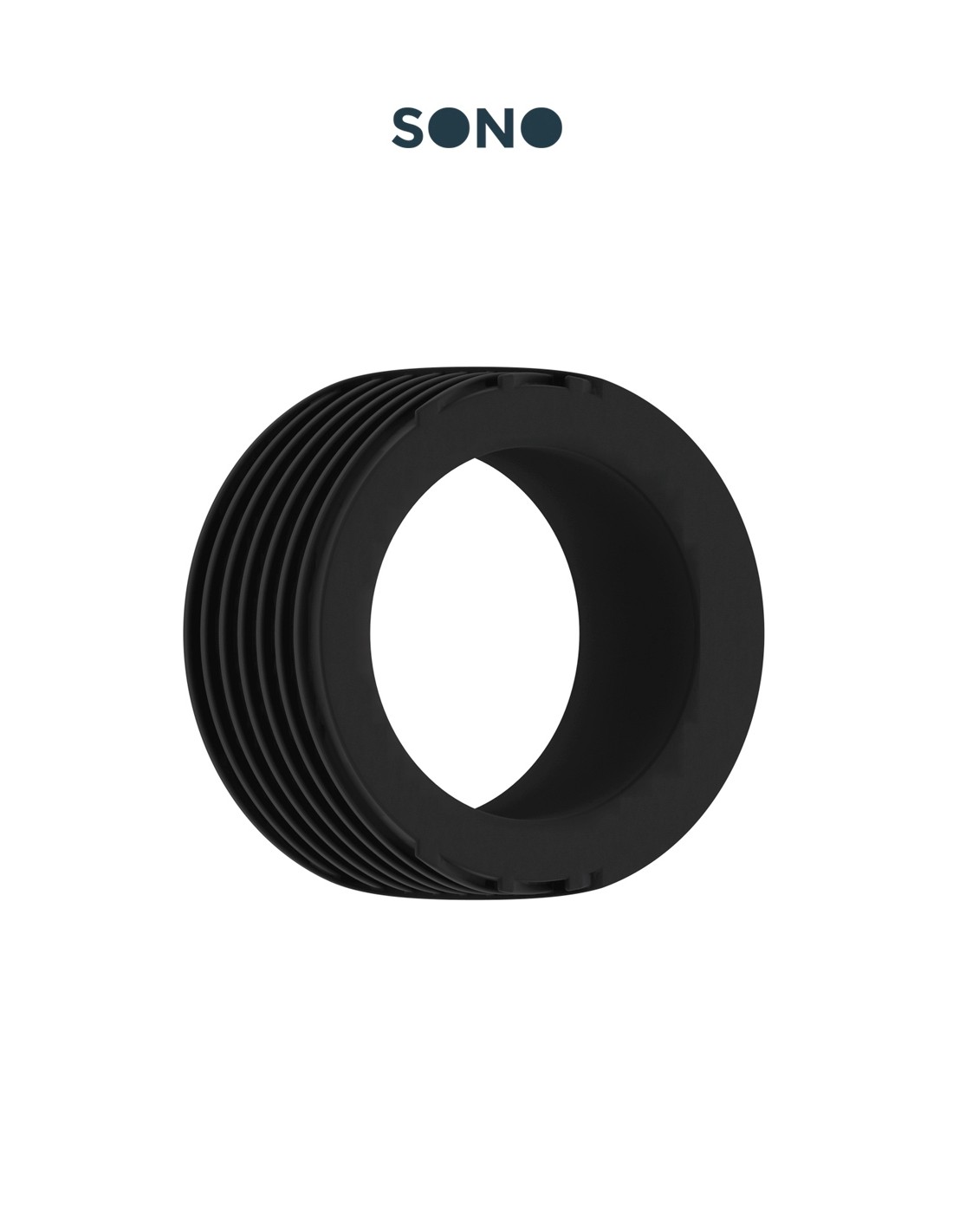 Pour les amateurs de cockrings et de sensations, la marque SONO propose son anneau de pénis n°42, en TPE noir hyper extensible.