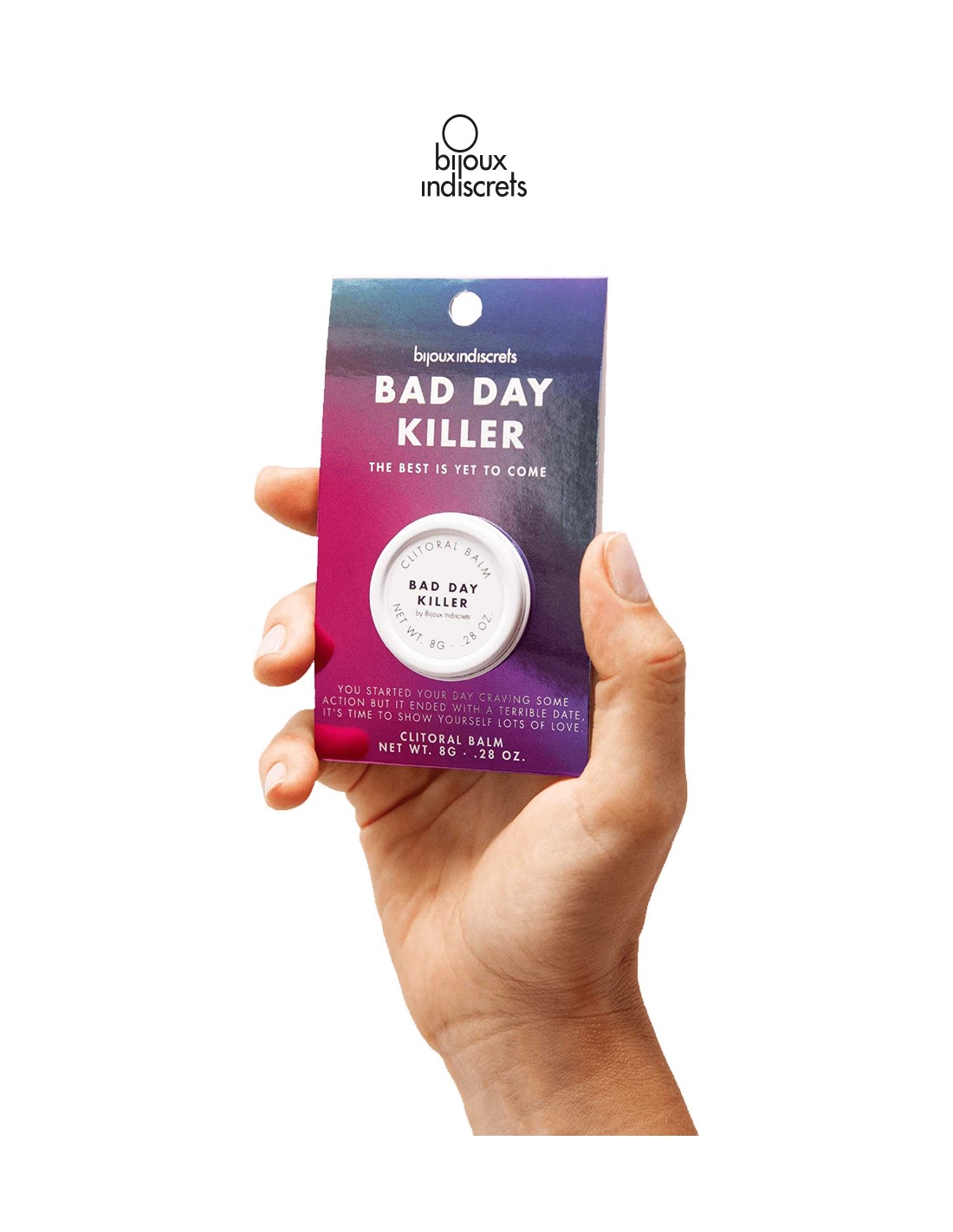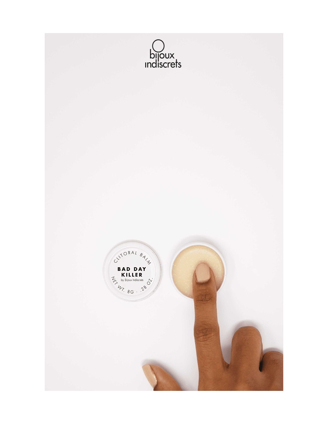 Bijoux Indiscrets la célèbre marque Espagnole de cosmétiques intimes présente son baume clitoridien Bad Day Killer. Cette cosmétique spéciale stimulation du clitoris se présente dans une petite boite sous forme dun baume à étaler avec le doigt. Ce baume stimulant est discrètement parfumé à lAnis Étoilé.