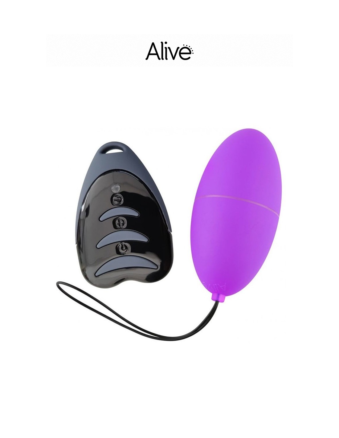 Petit oeuf vibrant télécommandé violet, puissant et silencieux pour se faire plaisir en solo ou en couple, marque Alive.
