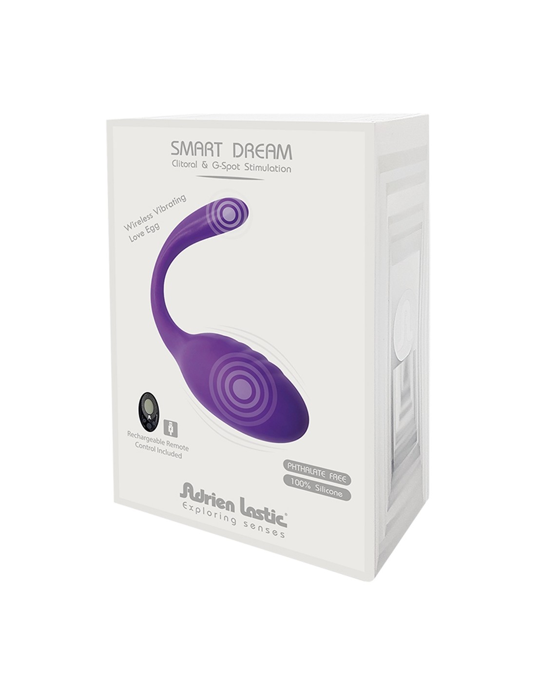 Avec sa courbure ergonomique spéciale point G qui épouse lanatomie féminine à la perfection, Smart Dream 2 procure à la fois les sensations d'un oeuf vibrant et d'un stimulateur clitoridien, le tout fonctionnant à l'aide d'une télécommande sans fil, pour vous faire plaisir sans contrainte.