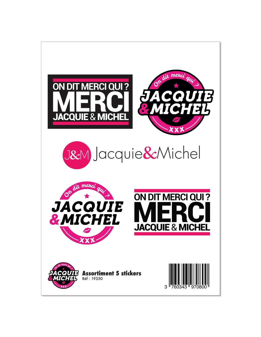 Planche de 5 autocollants Jacquie & Michel officiels différents à coller où vous voulez.