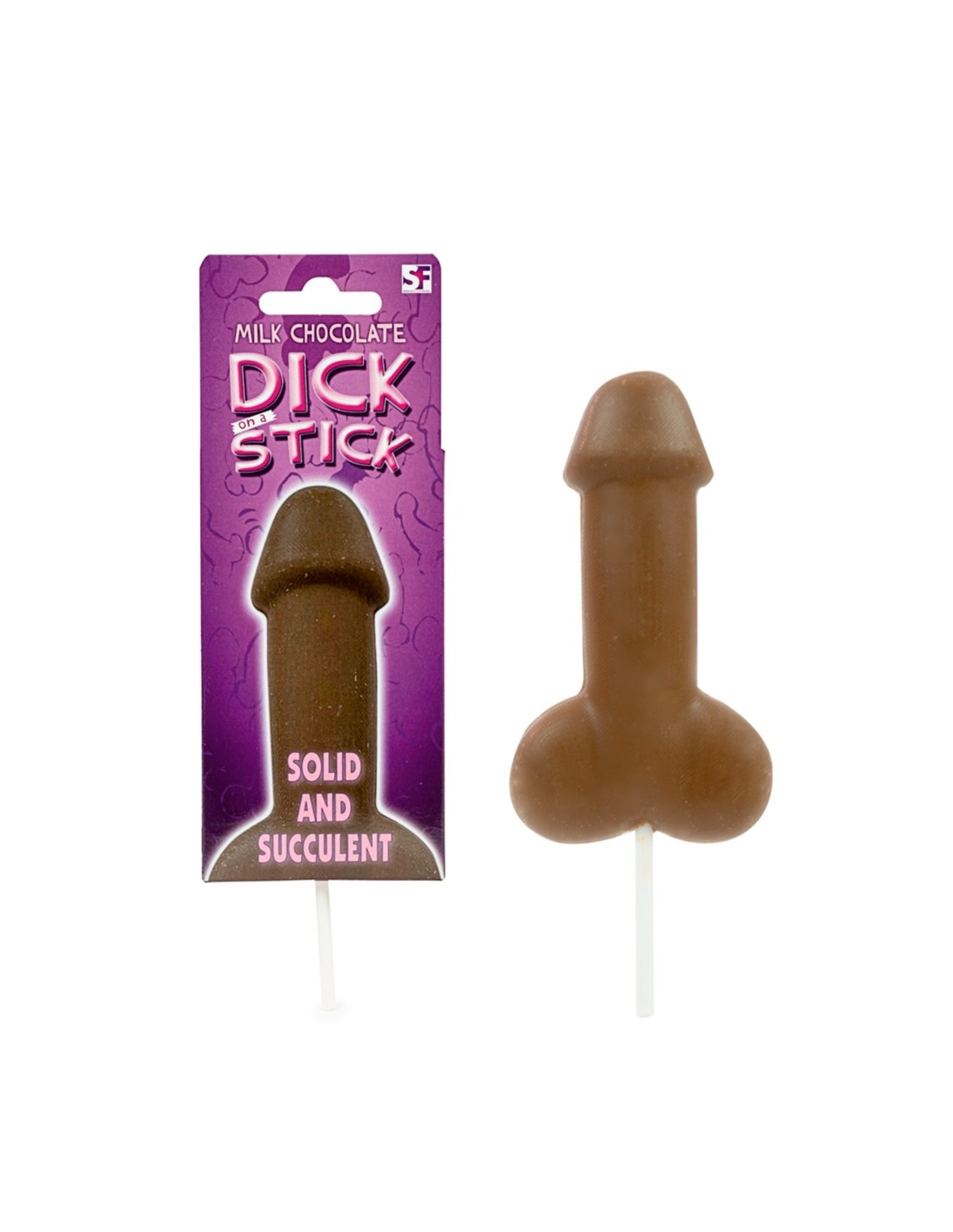 La sucette pénis "Dick on a stick" est une sucette en forme de pénis au chocolat au lait .