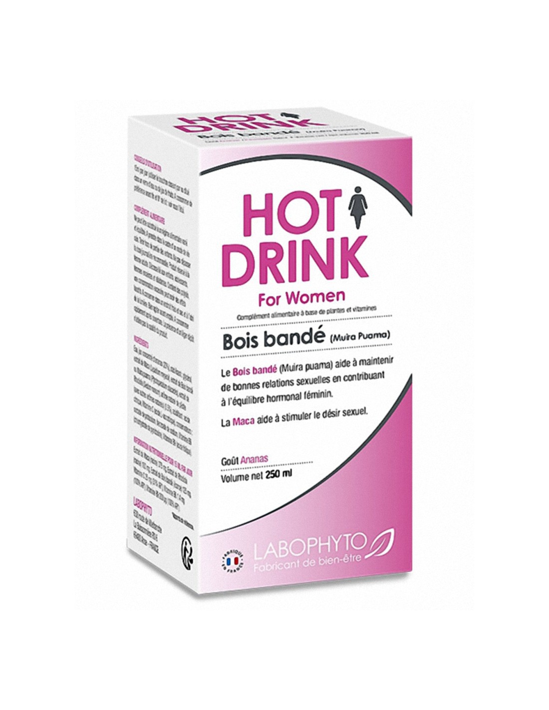 Hot Drink pour femmes des laboratoires Labophyto est un complément alimentaire à base de plantes et vitamines qui contribue à stimuler le désir sexuel grâce à la maca. Il contient également du bois bandé qui aide au maintien de bonnes relations sexuelles chez la femme en contribuant à l'équilibre hormonal.