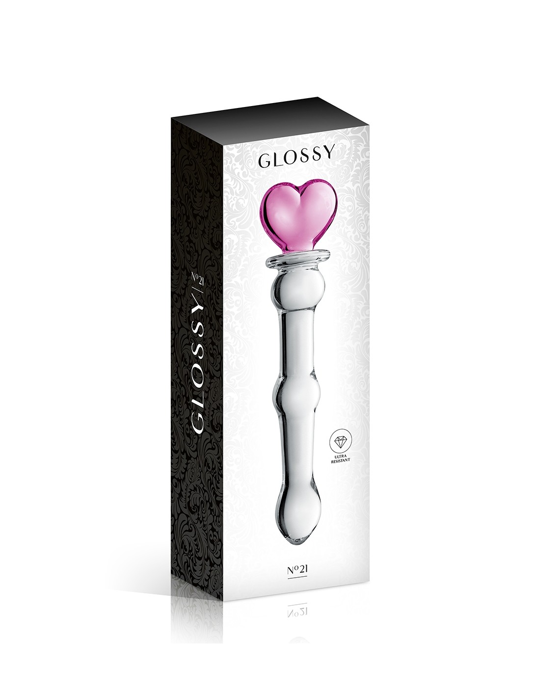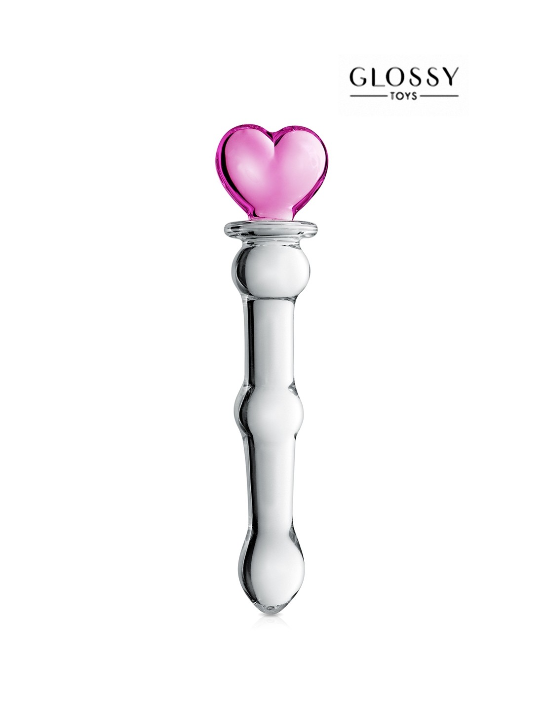 Glossy n°21 est un luxueux sextoy en verre incassable offrant un look très girly avec son corps translucide surmonté d'un cur rose.