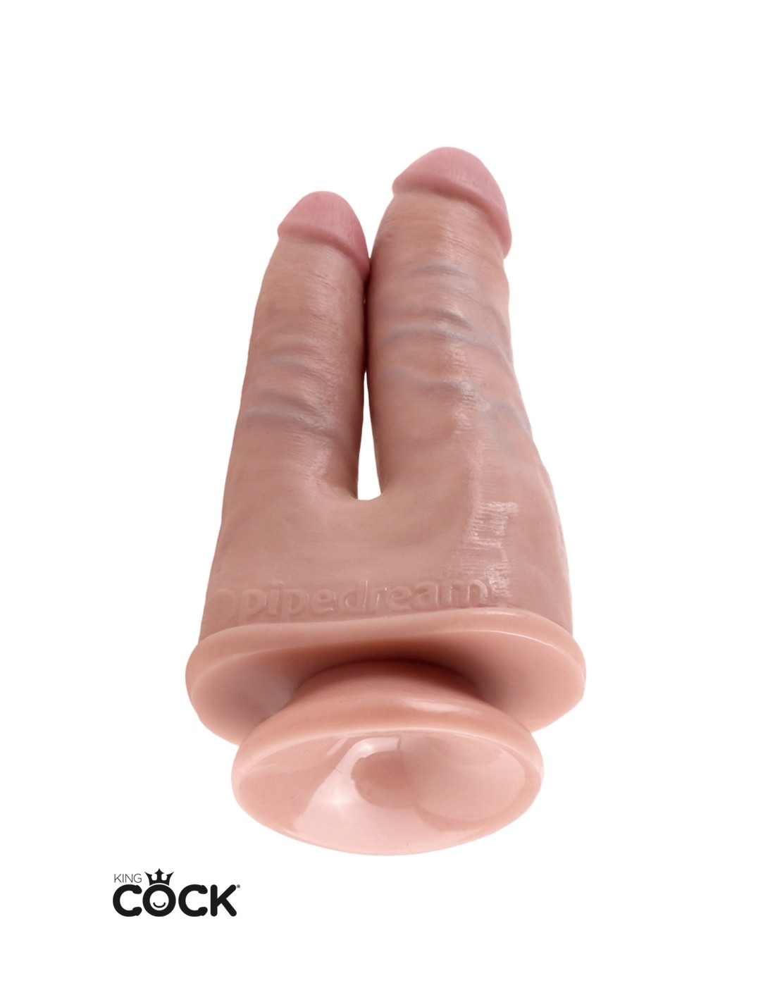 Ressentez des sensations hyper réalistes et goutez aux plaisirs de la double pénétration avec ce double gode King Cock monté sur une puissante ventouse.
