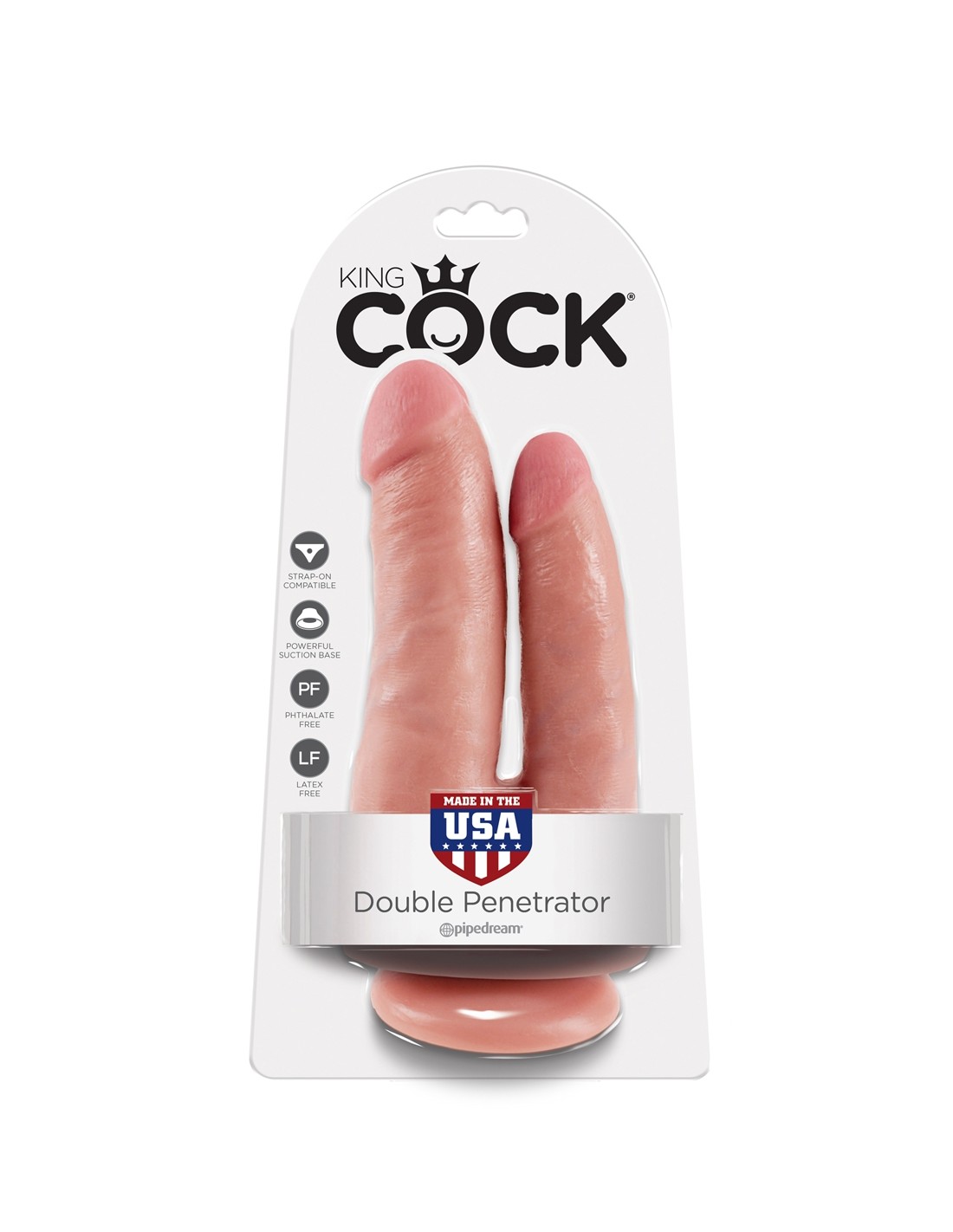 Pour assouvir vos fantasmes de DP, King Cock Double Penetrator propose 2 verges de tailles et de diamètres différents.