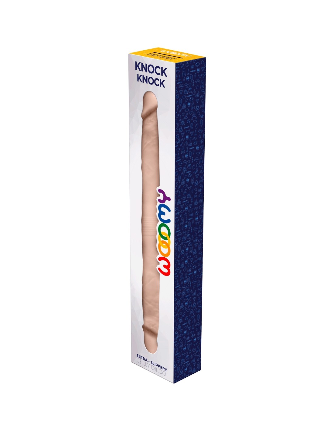 Le Double Dong Knock-Knock de la marque Wooomy est un sextoy de grande taille (40 x 4 cm ), en jelly, flexible, idéal pour jouer à deux ou pratiquer la double pénétration en solo.