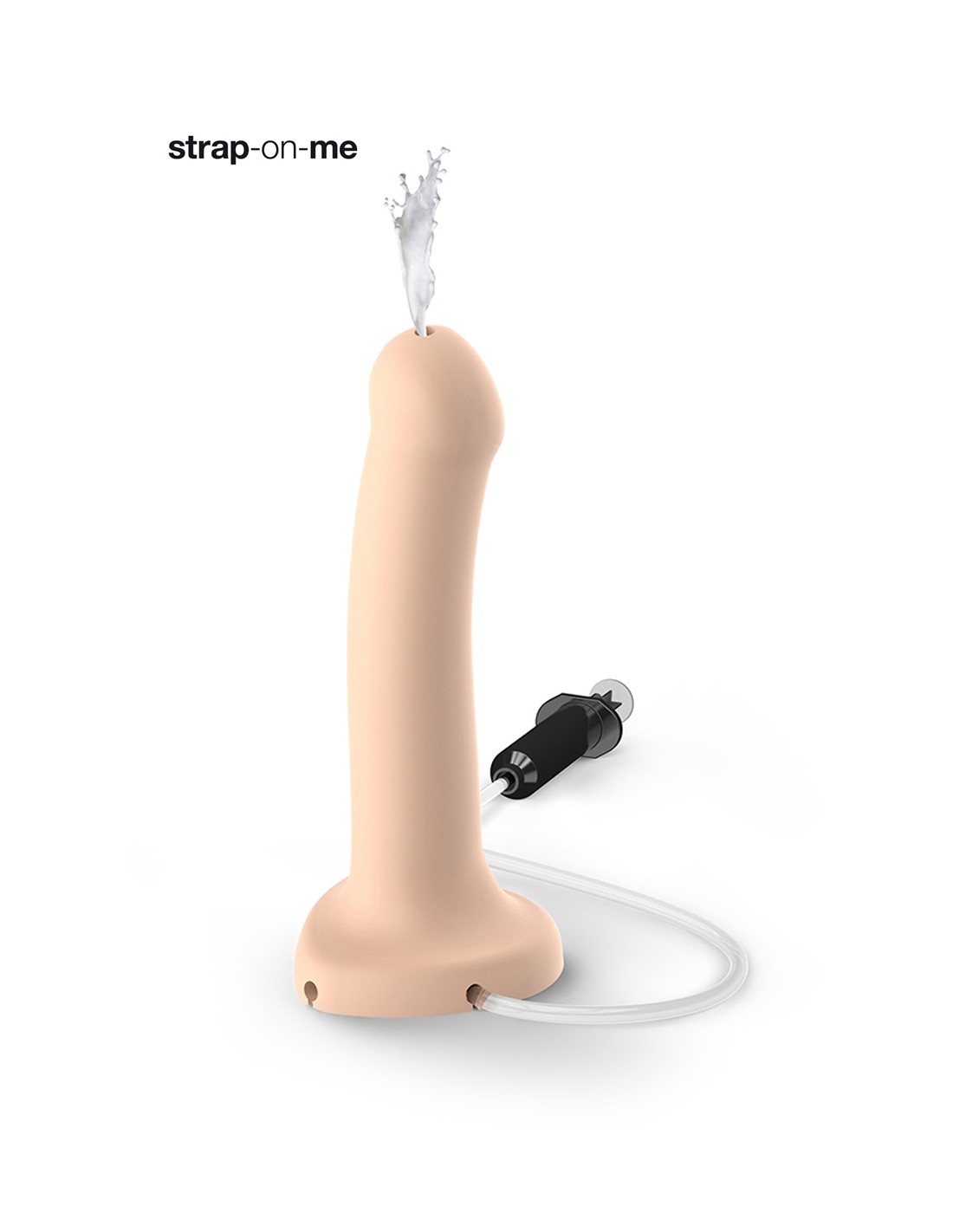 Superbe dildo évacuateur en silicone signé Strap-On-Me, muni dun piston pour que même lutilisation dun sextoy ai une « happy End ».