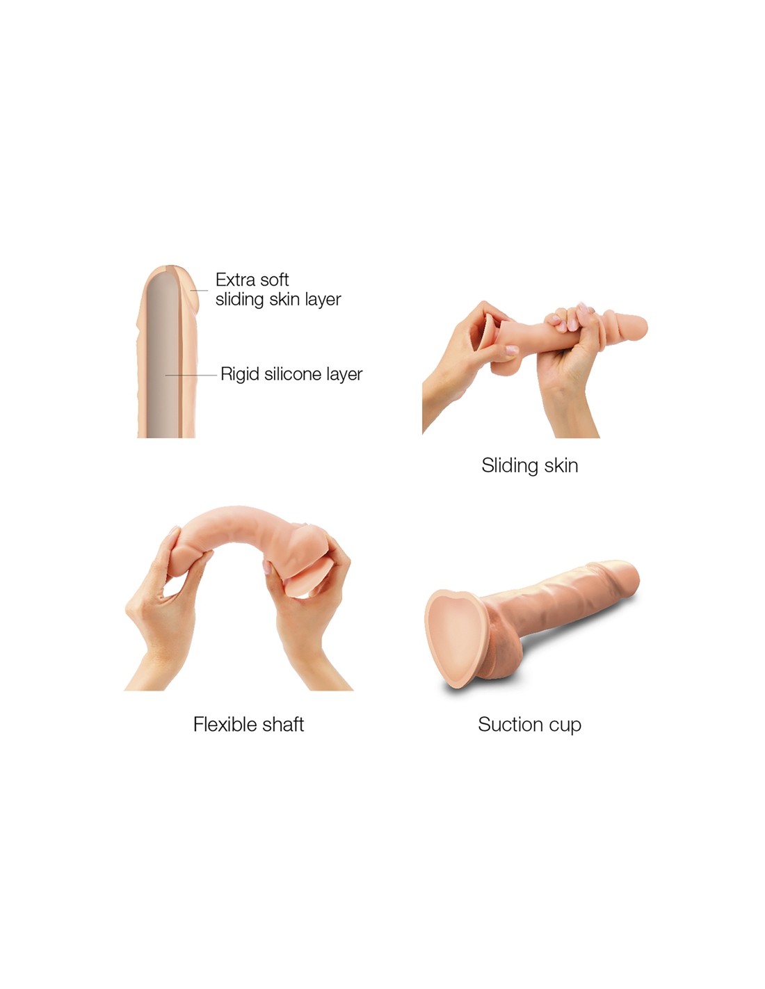 Le seul dildo réaliste en silicone double densité dont la peau coulisse. Modèle taille S.