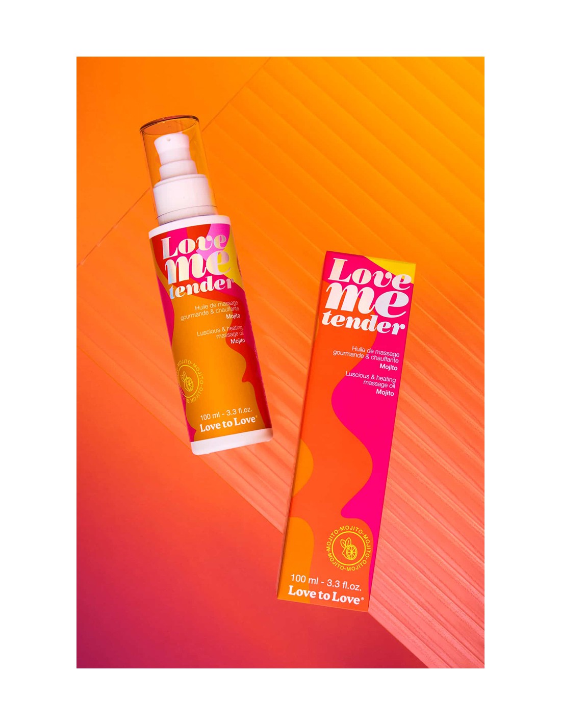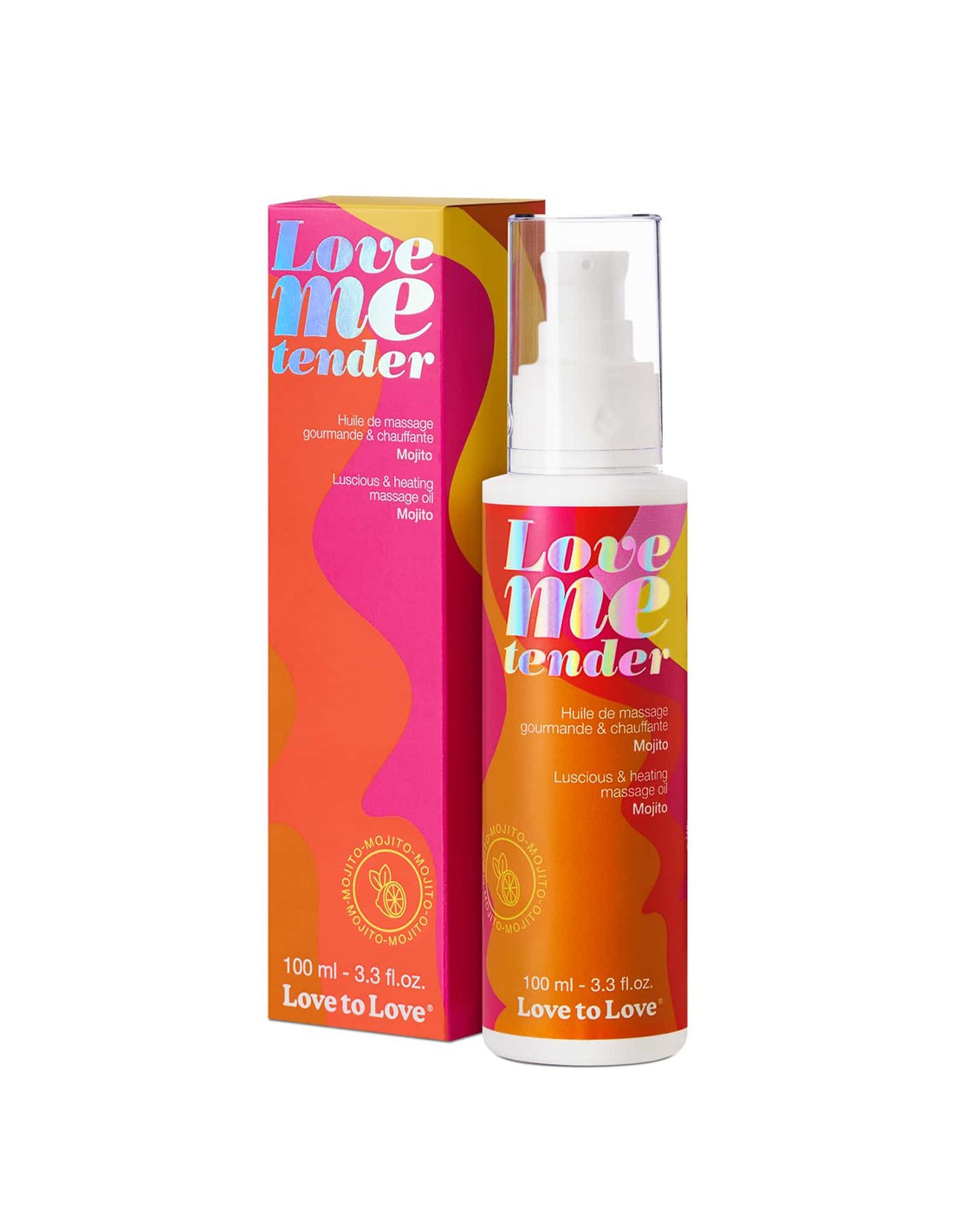 Huile de massage comestible goût mojito fabriquée en France par Love to Love.