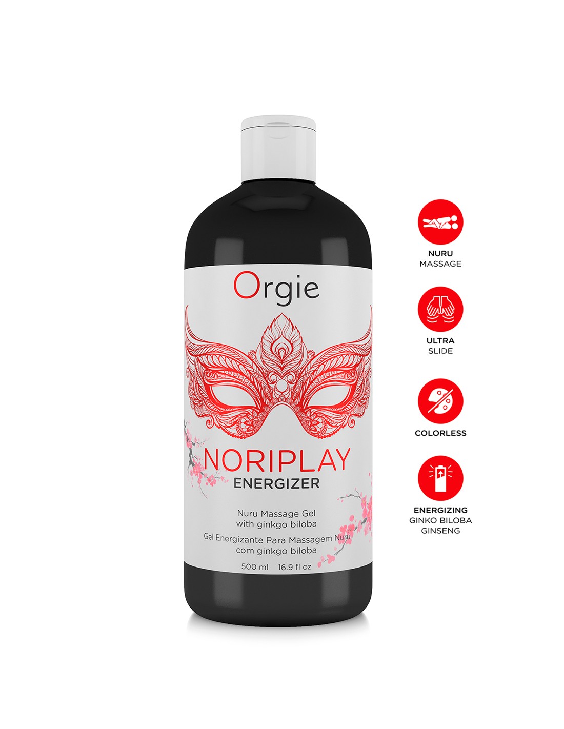 Le gel Noriplay Energizer formulé à base dextrait dalgues et enrichi en Ginkgo Biloba offre la texture parfaite et un effet ultra glissant pour réaliser le massage Nuru corps à corps renforcé par les propriétés énergisantes du Ginkgo Biloba et du Ginseng.
