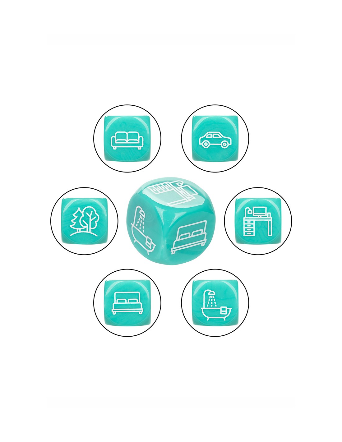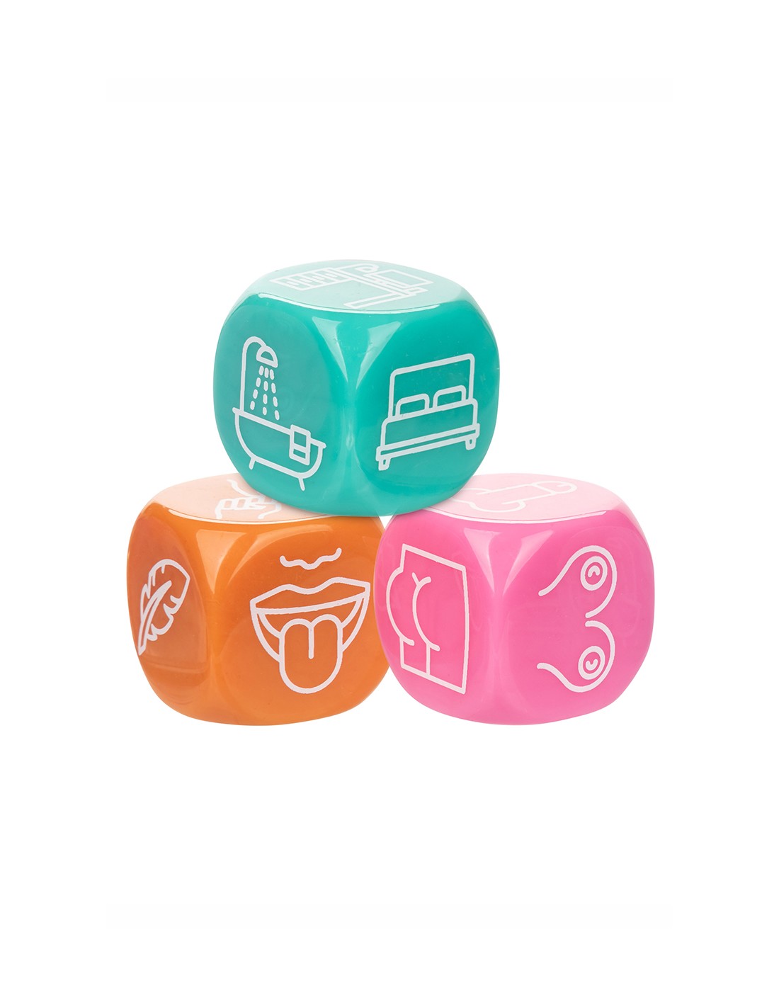 Chacun des 3 dés répond à l'une de ces questions : que faire? que dois-je utiliser? où dois-je le faire? Alors n'hésitez plus: lancez les dés et laissez le hasard vous emmener vers de nouveaux horizons érotiques.