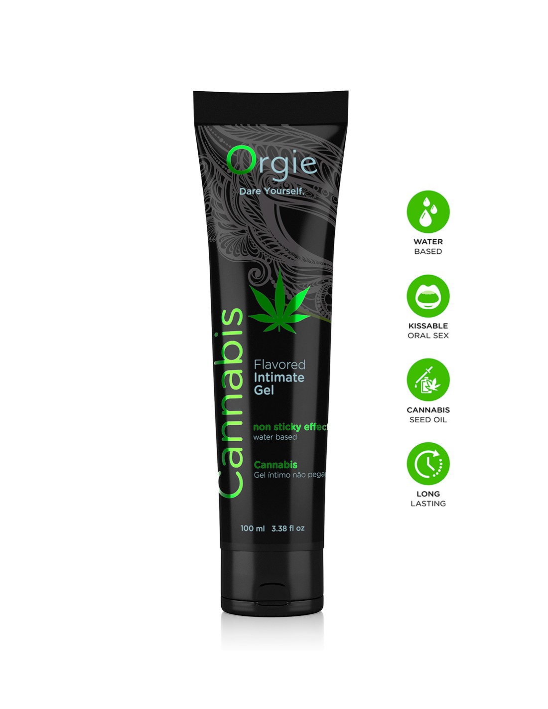 Lube Tube Cannabis (100 ml), le gel intime à base deau, embrassable, hydratant, au goût de cannabis, de la marque orgie.