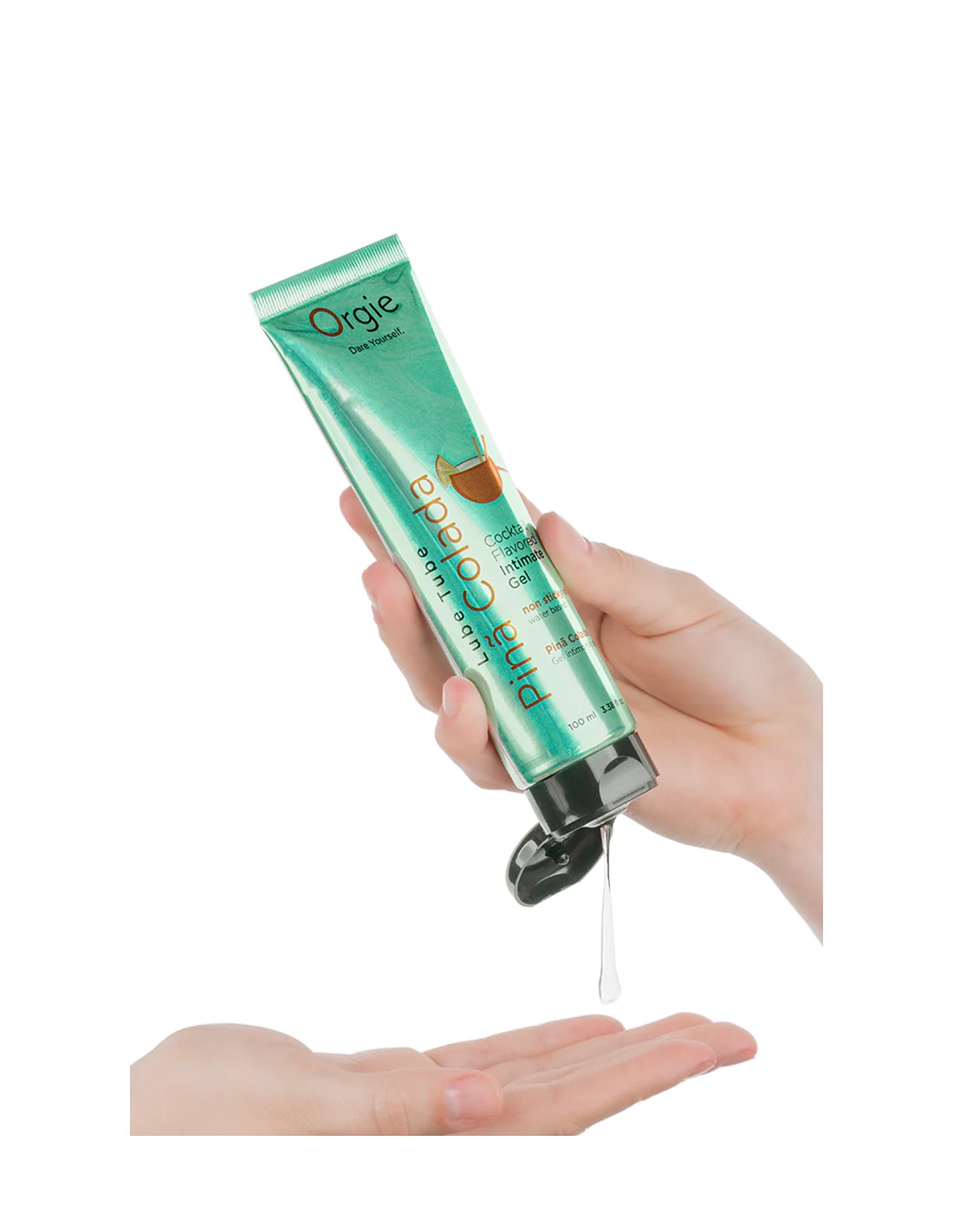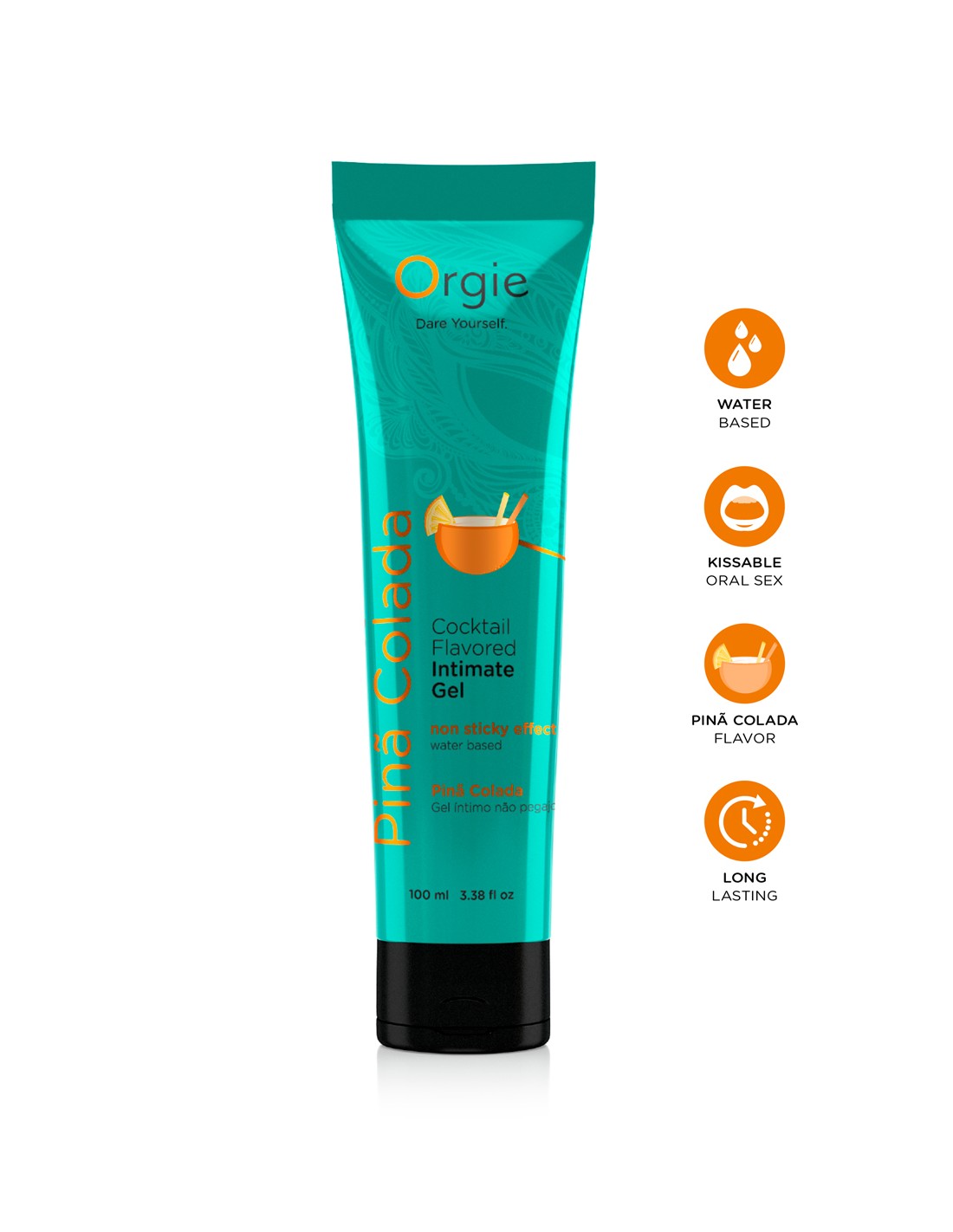 Gel intime Orgie à base deau, embrassable, longue durée, au goût de Cocktail Piña Colada, en tube de 100ml.