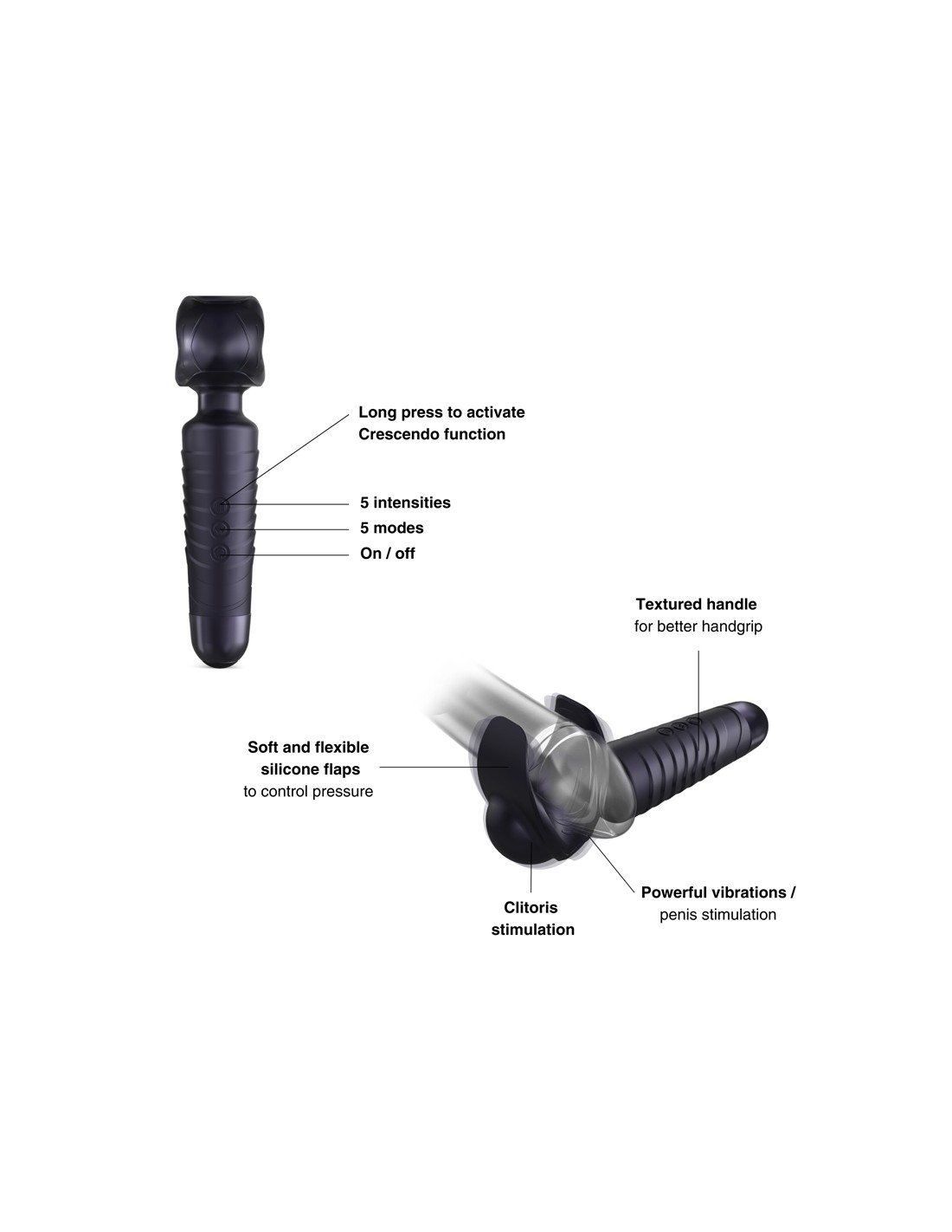 - 5 modes de vibrations & 5 intensités avec Fonction Crescendo