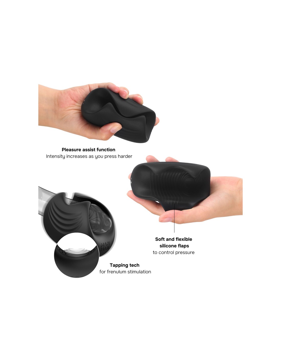 Masturbateur puissant, qui peut sutiliser avec ou sans érection, avec technologie "tapping" pour des sensations incroyables.