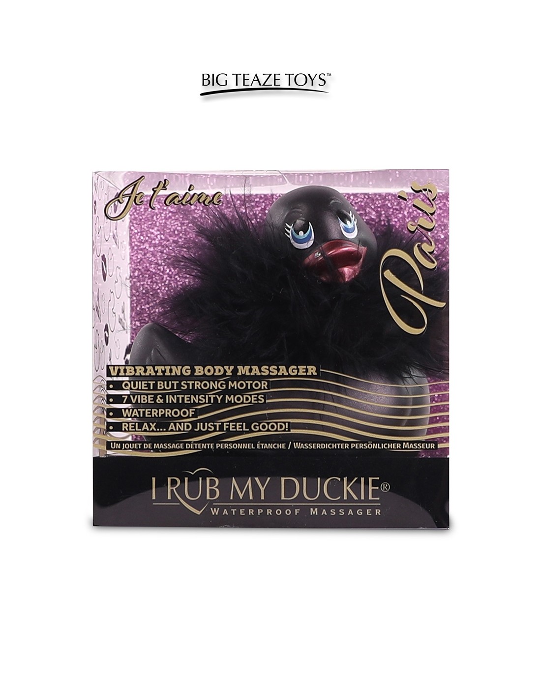 Le canard vibrant le plus célèbre du monde, "I Rub My Duckie" de la marque Big Teaze Toys, se présente dans une version mini noire, glamour et sexy, reprenant les codes des nuits parisiennes.