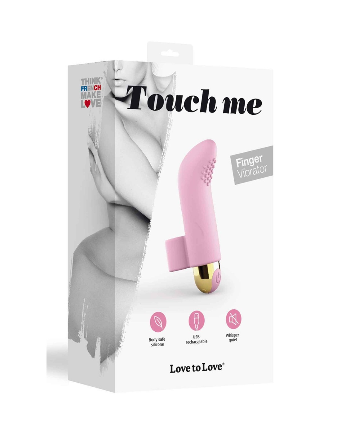 Touch Me c'est le plaisir à portée de main ! Petit par la taille mais grand par sa puissance, ce stimulateur qui se fixe au doigt saura vous conquérir grâce à sa forme ergonomique, sa tête courbée spéciale point G et son silicone texturé adapté au massage du clitoris.