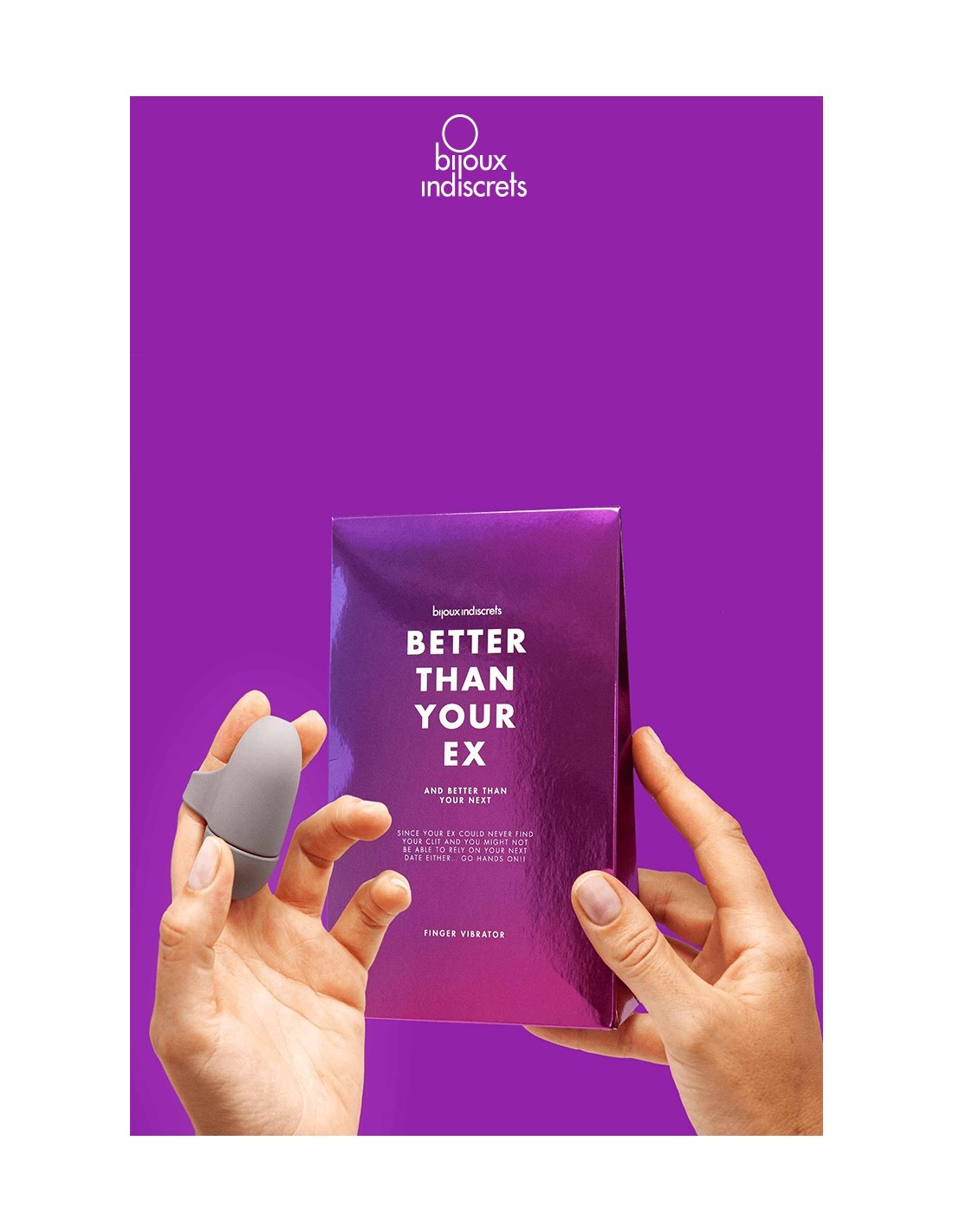 Le doigt vibrant « Better Than Your Ex » est fabriqué en silicone. Il est doux au toucher et nirritera pas vos muqueuses. Son moteur puissant propose 10 modes de vibration différentes, vous pourrez en changer en appuyant sur le bouton On/Off.
