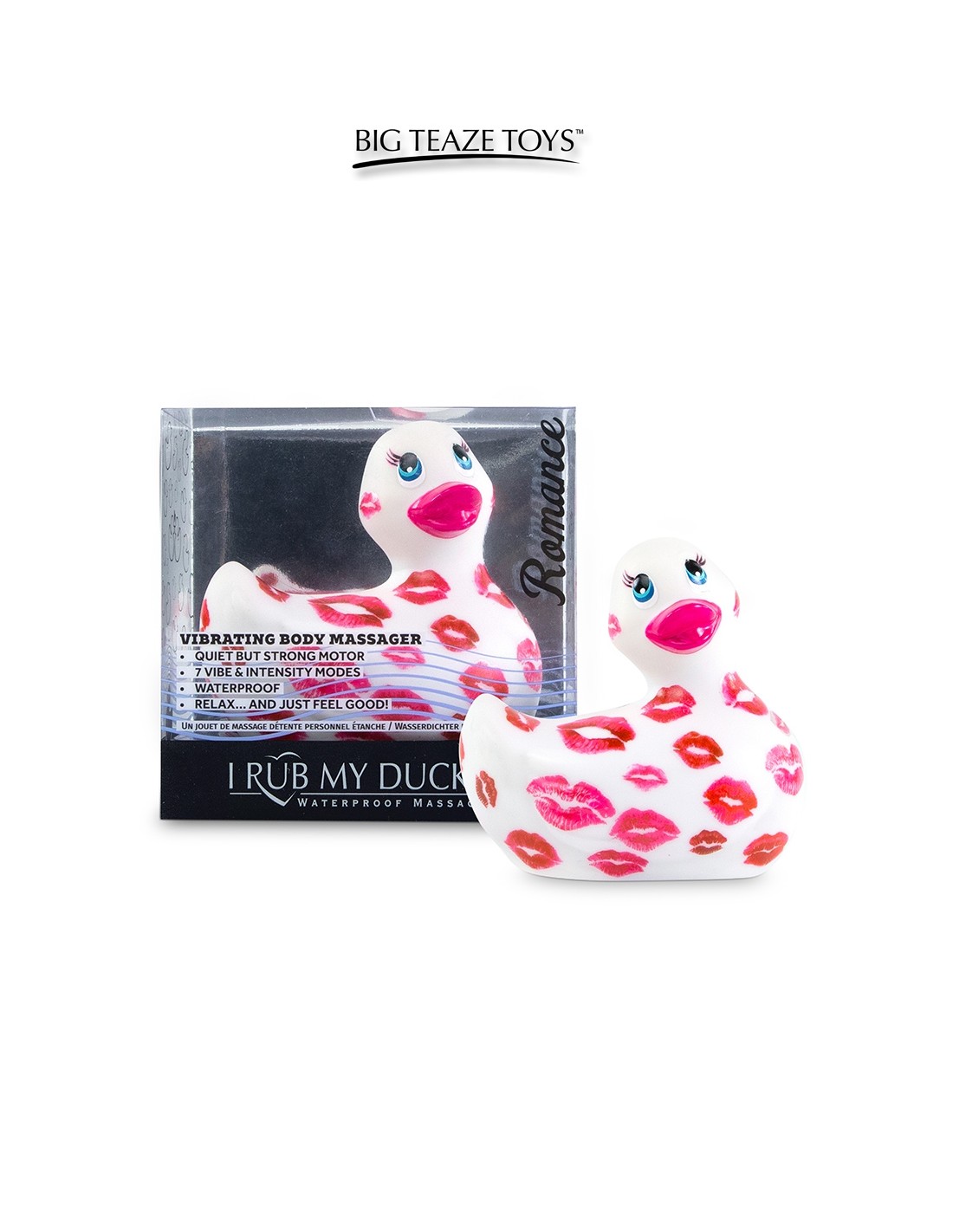 Le canard vibrant le plus célèbre du monde, "I Rub My Duckie" de la marque Big Teaze Toys, se présente dans lédition "Romance" et plus précisément en version blanche recouverte de bisous de couleur rose. Son design revu le rends plus actuel et plus fun.