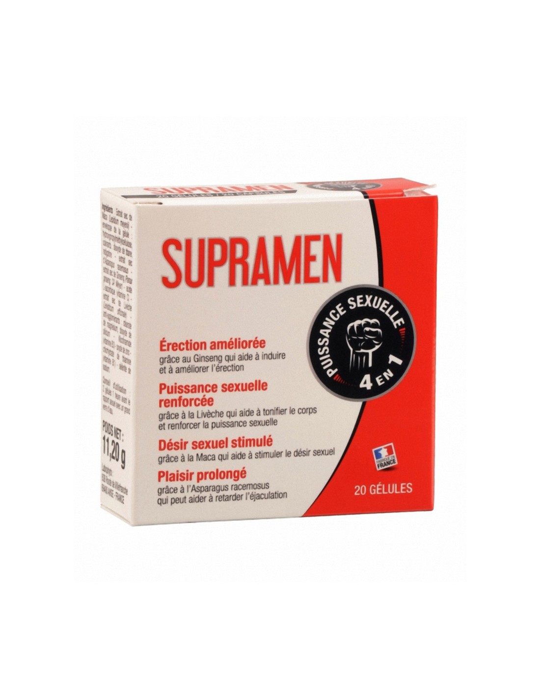 SUPRAMEN est un booster de puissance sexuelle 4 en 1: érection favorisée, puissance sexuelle renforcée, désir sexuel stimulé et plaisir prolongé.