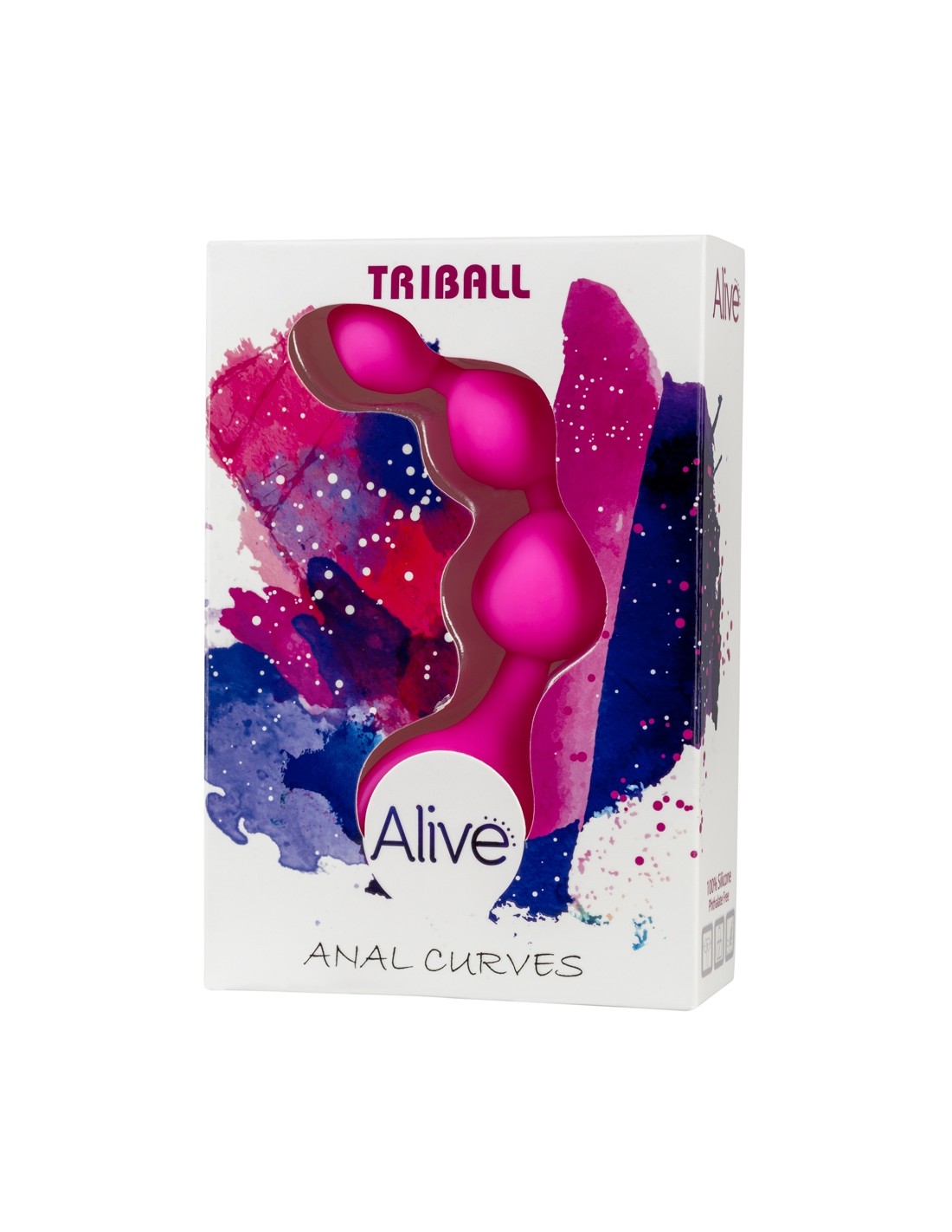 La marque ALive présente Triball, un plug anal en forme de mini-chapelet, flexible et composée de 3 boules de différentes tailles. L'anneau à son extrémité est idéal pour la bonne prise en main du sextoy ainsi qu'un massage anal précis et efficace.