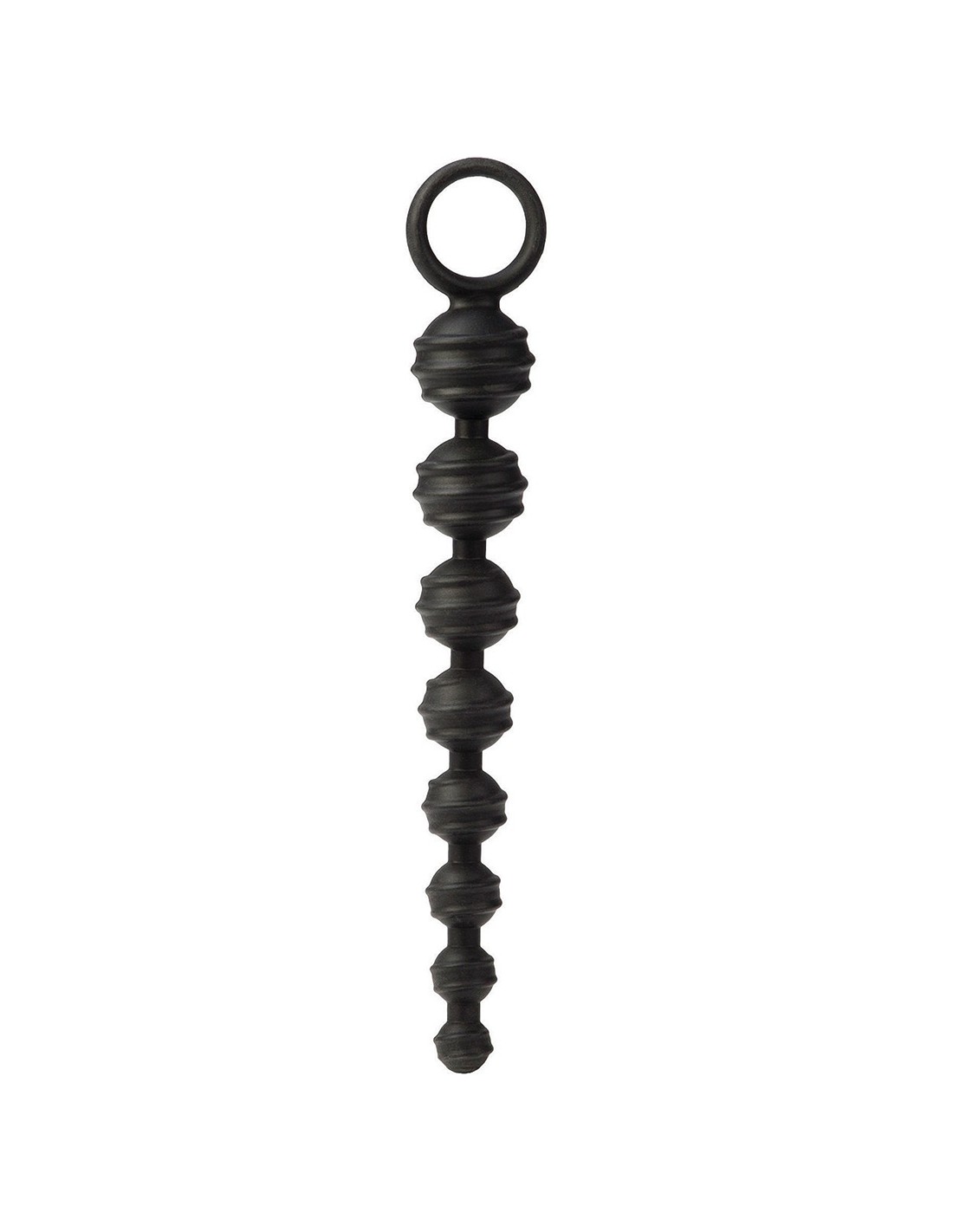 Chaine anale 100% silicone, dimensions 27,25 x 4,5 cm, avec perles nervurées pour accroitre les sensations.
