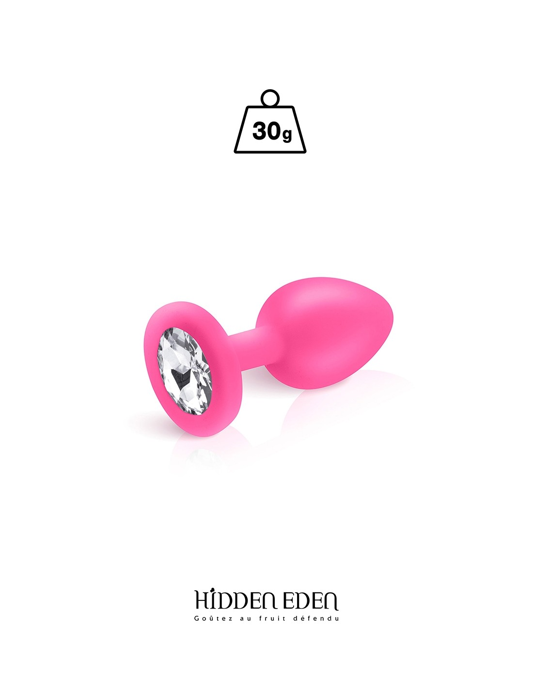La marque Hidden Eden vous propose de découvrir ce superbe plug bijou décoré dun strass rond transparent. Ce modèle fabriqué en silicone rose pèse 30 grammes pour une longueur totale de 7,2 cm et un diamètre moyen de 2,7 cm.