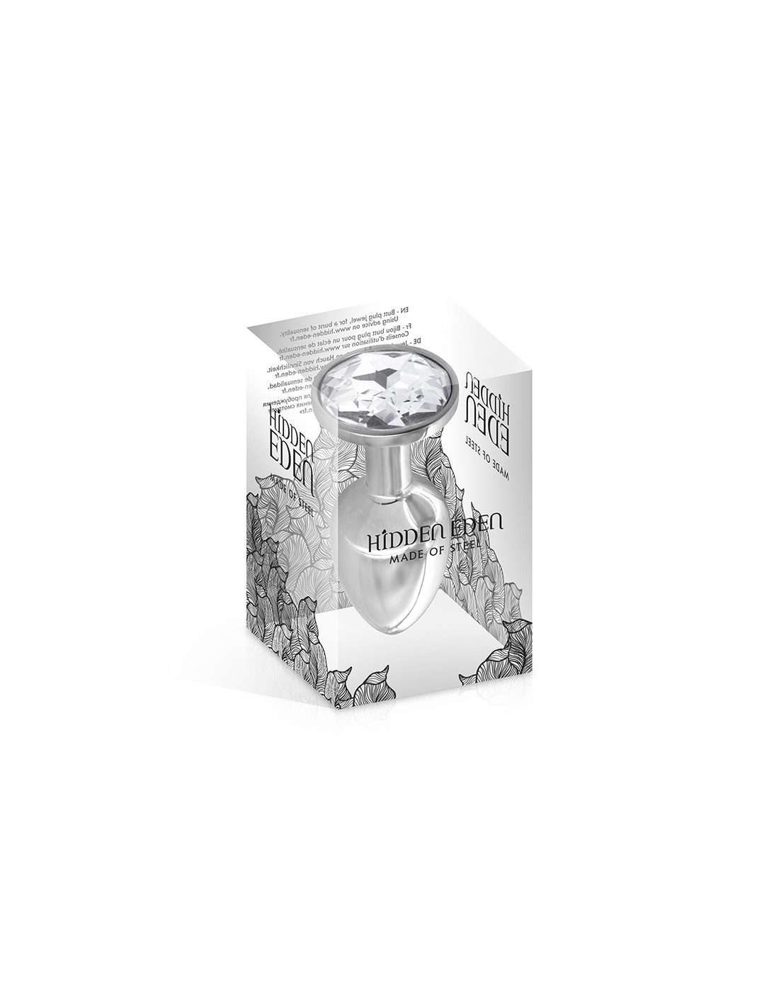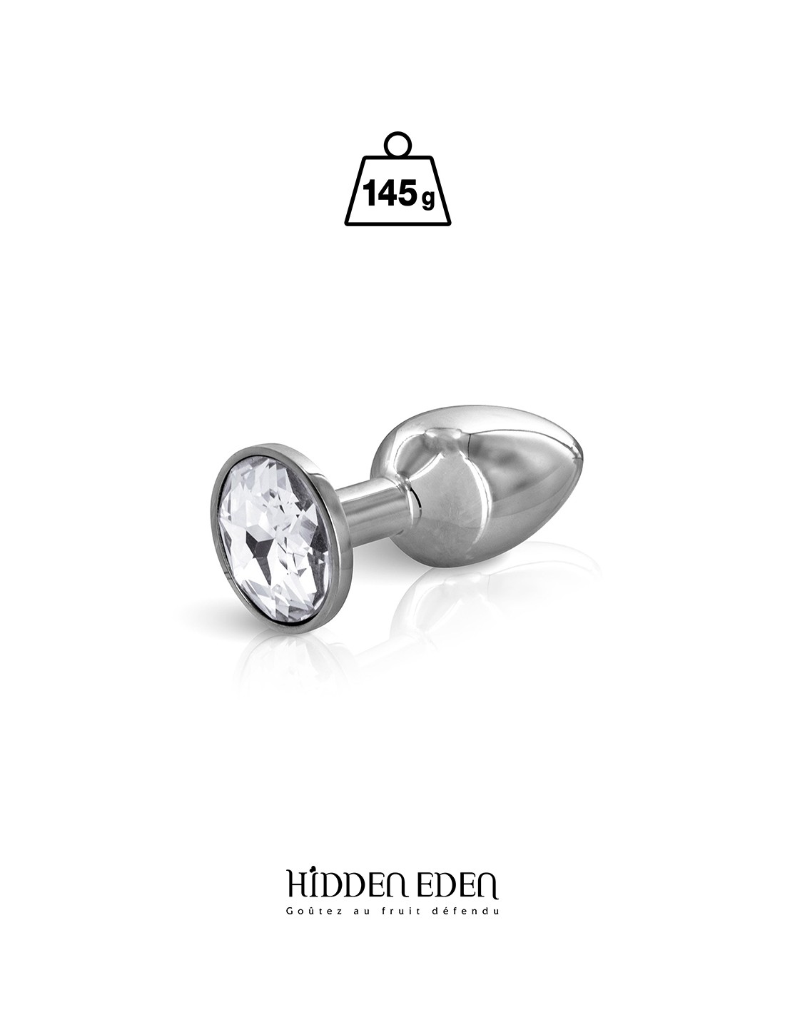 La marque Hidden Eden vous propose de découvrir ce superbe plug bijou décoré dun strass rond transparent. Ce modèle fabriqué en acier pèse 145 grammes pour une longueur totale de 7,5 cm et un diamètre moyen de 2,8 cm.