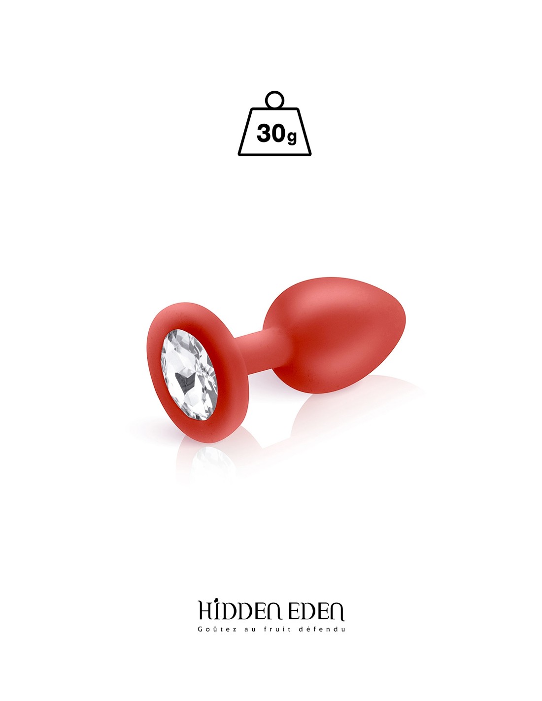 La marque Hidden Eden vous propose de découvrir ce superbe plug bijou décoré dun strass rond transparent. Ce modèle fabriqué en silicone rouge pèse 30 grammes pour une longueur totale de 7,2 cm et un diamètre moyen de 2,7 cm.