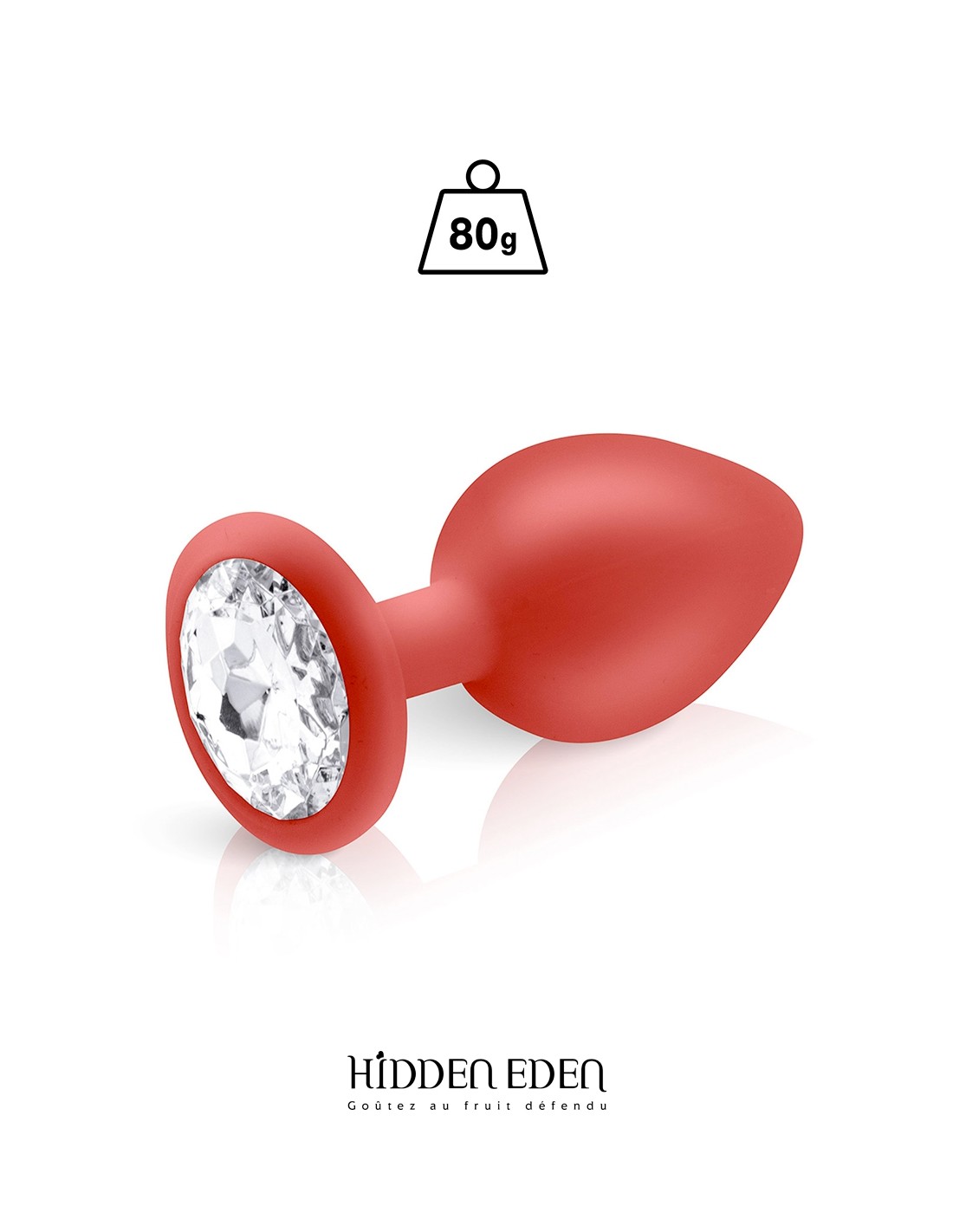 La marque Hidden Eden vous propose de découvrir ce superbe plug bijou décoré dun strass rond transparent. Ce modèle fabriqué en silicone rouge pèse 80 grammes pour une longueur totale de 9,3 cm et un diamètre moyen de 4,3 cm.