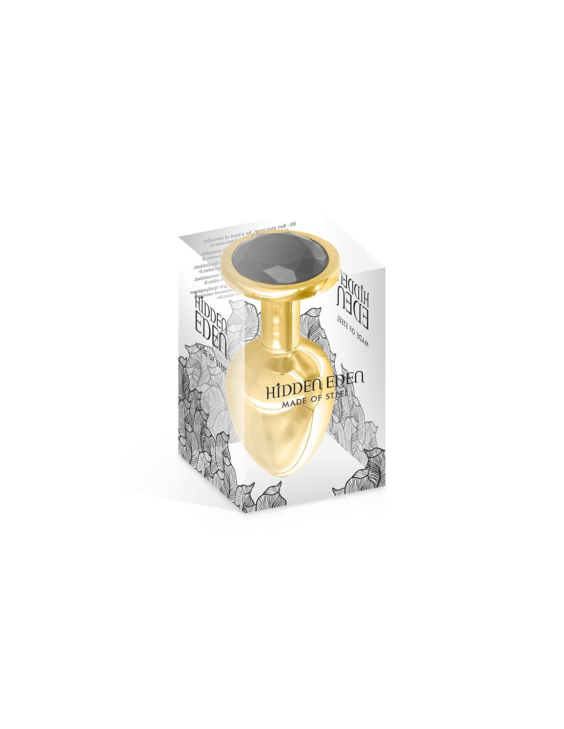 La marque Hidden Eden vous propose de découvrir ce superbe plug bijou décoré dun strass rond noir. Ce modèle fabriqué en aluminium doré et pèse 90 grammes pour une longueur totale de 8,3 cm et un diamètre moyen de 3,4 cm.