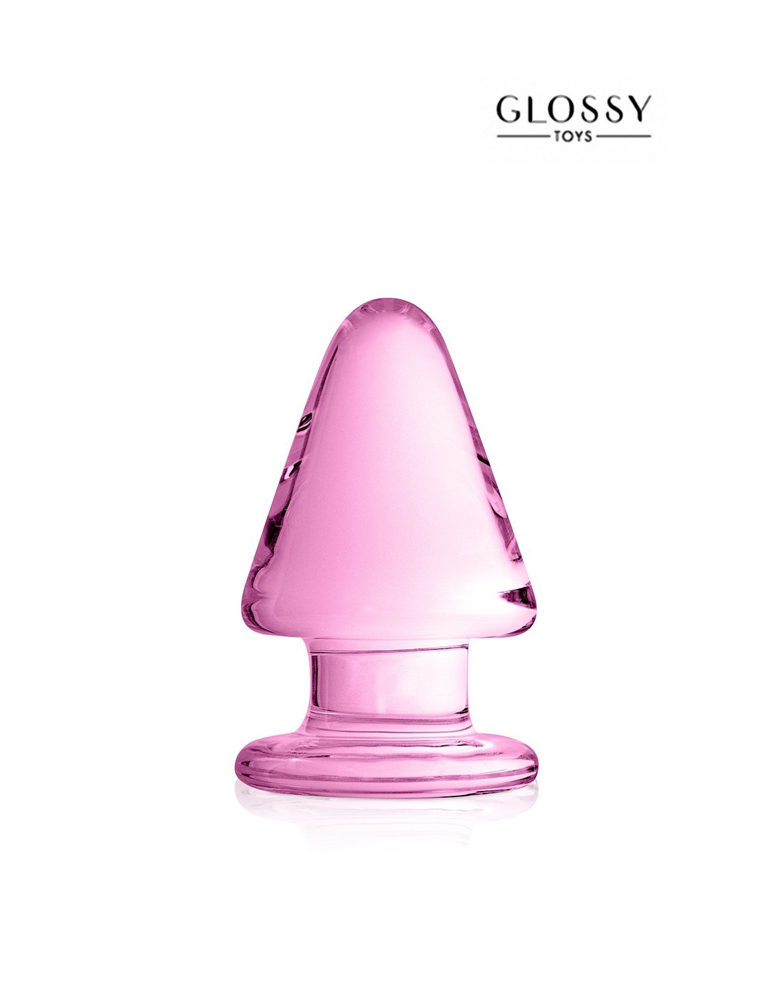 Un luxueux sextoy anal en verre incassable rose avec une forme conique lisse qui facilite la pénétration et une base large qui permet une introduction complète du plug sans risque.