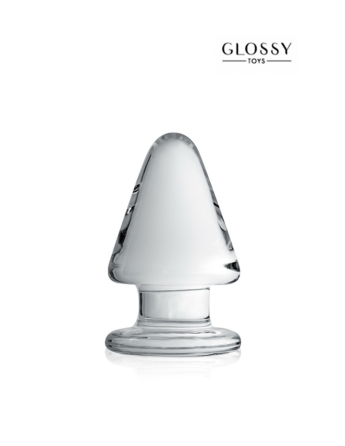 Un luxueux sextoy anal en verre incassable translucide avec une forme conique lisse qui facilite la pénétration et une base large qui permet une introduction complète du plug sans risque.