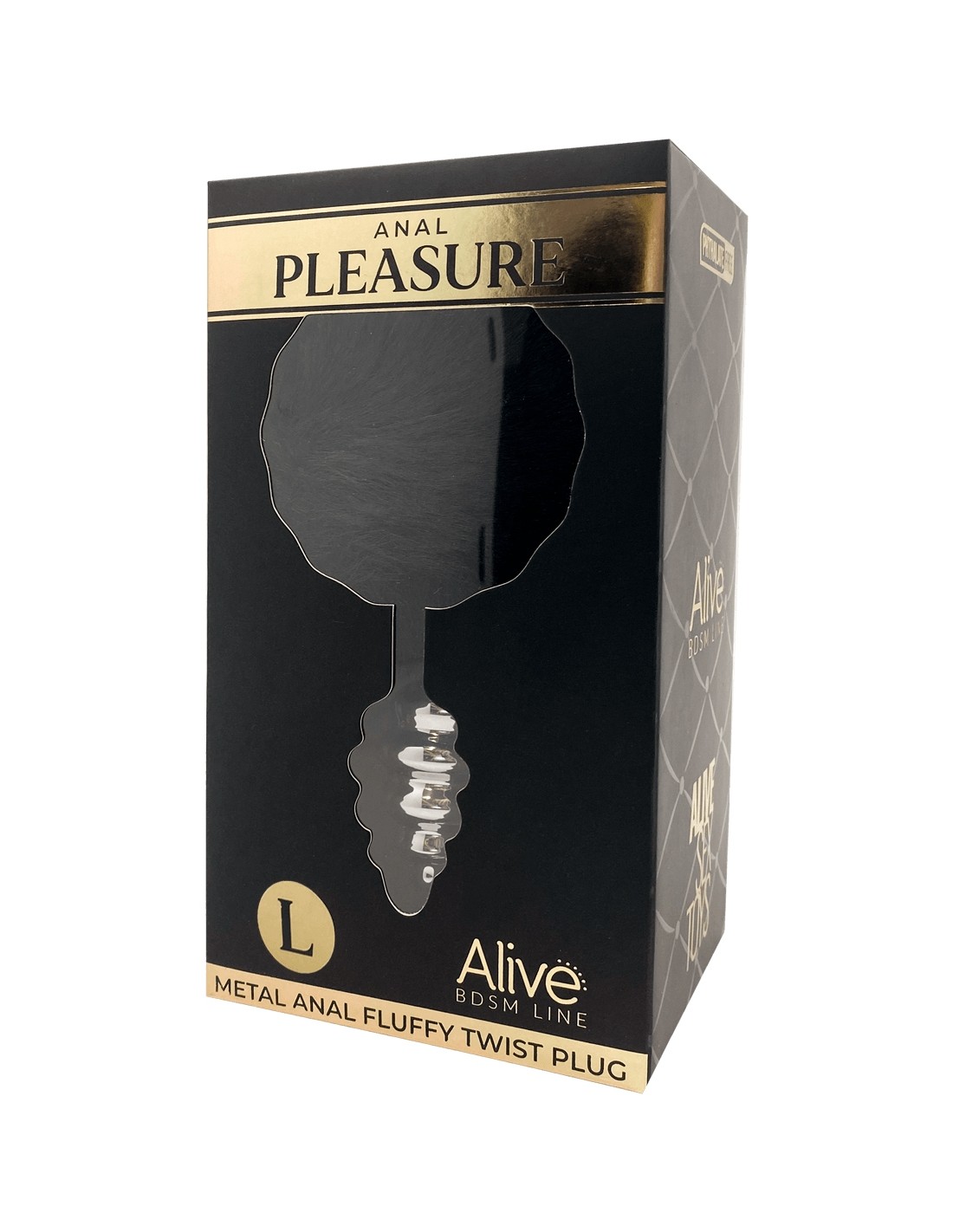 Tout autant sextoy anal, bijou coquin qu'accessoire de jeu BDSM, le plug Fluffy Twist taille L noir de chez Alive est un jouet intime particulièrement original et sexy avec son pompon en fourrure synthétique fixé à son extrémité.