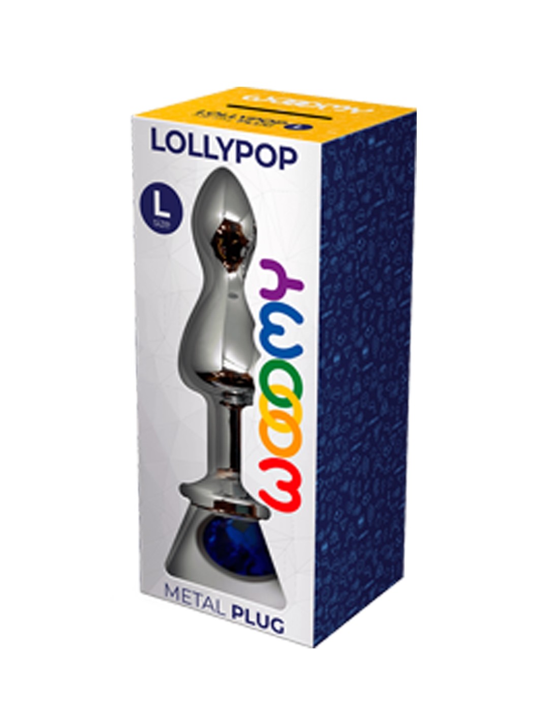 Le plug en métal Lollyplug bleu taille L de la marque Wooomy est à la fois un sextoy anal et un bijou d'anus.
