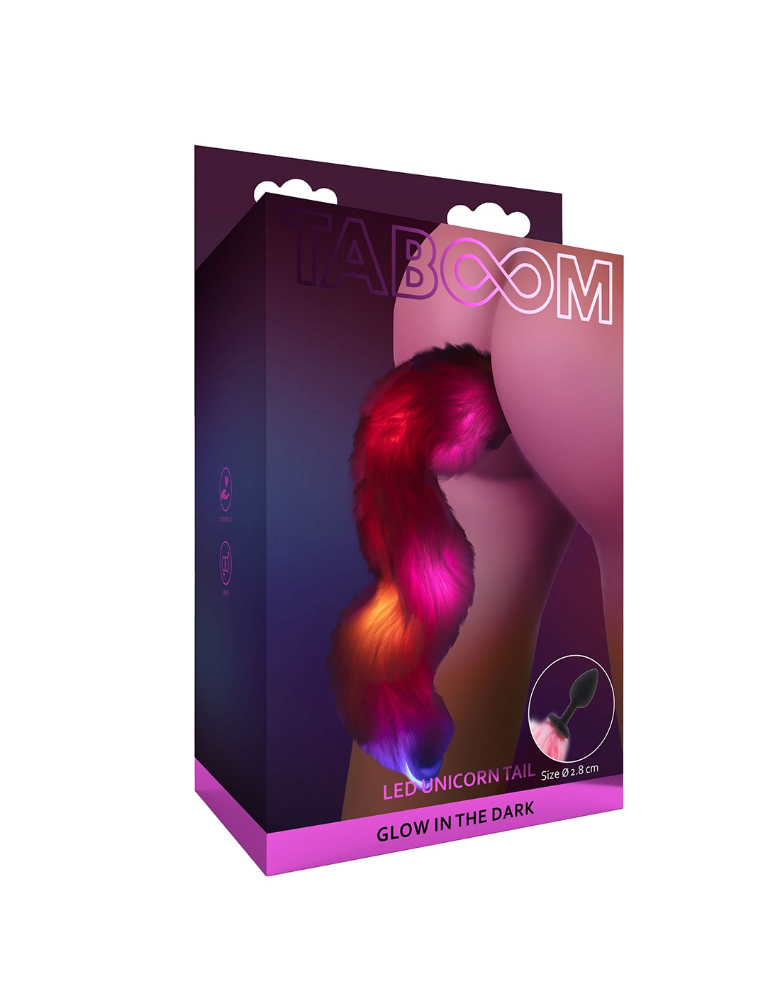 Faites vous plaisir et pimentez vos jeux de rôle coquins avec le plug anal "Taboom Unicorn Tail With Buttplug and led" et sa queue licorne lumineuse.
