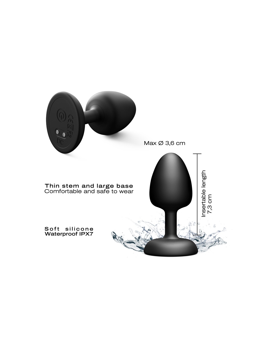 Grossiste Sextoys Dorcel - Plug anal vibrant, étanche, télécommandé et rechargeable, en Soft silicone, diùmensions 7,3 x 3,6 cm.