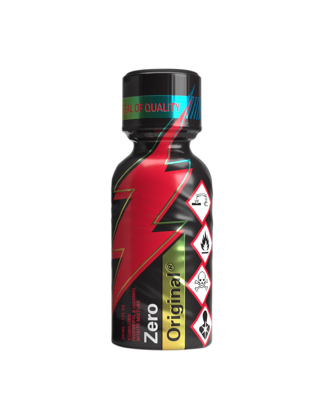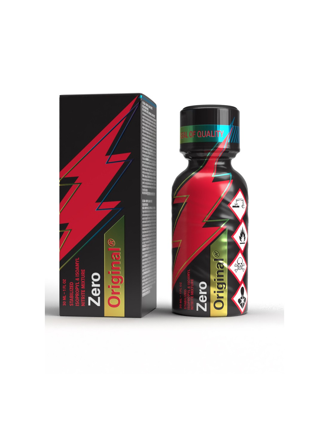 Original Zero 30ml est un stimulant à la fois physique et sexuel ultra fort à la formulation hybride (nitrite d'amyle et de propyle) réservé aux adeptes de sensations fortes.