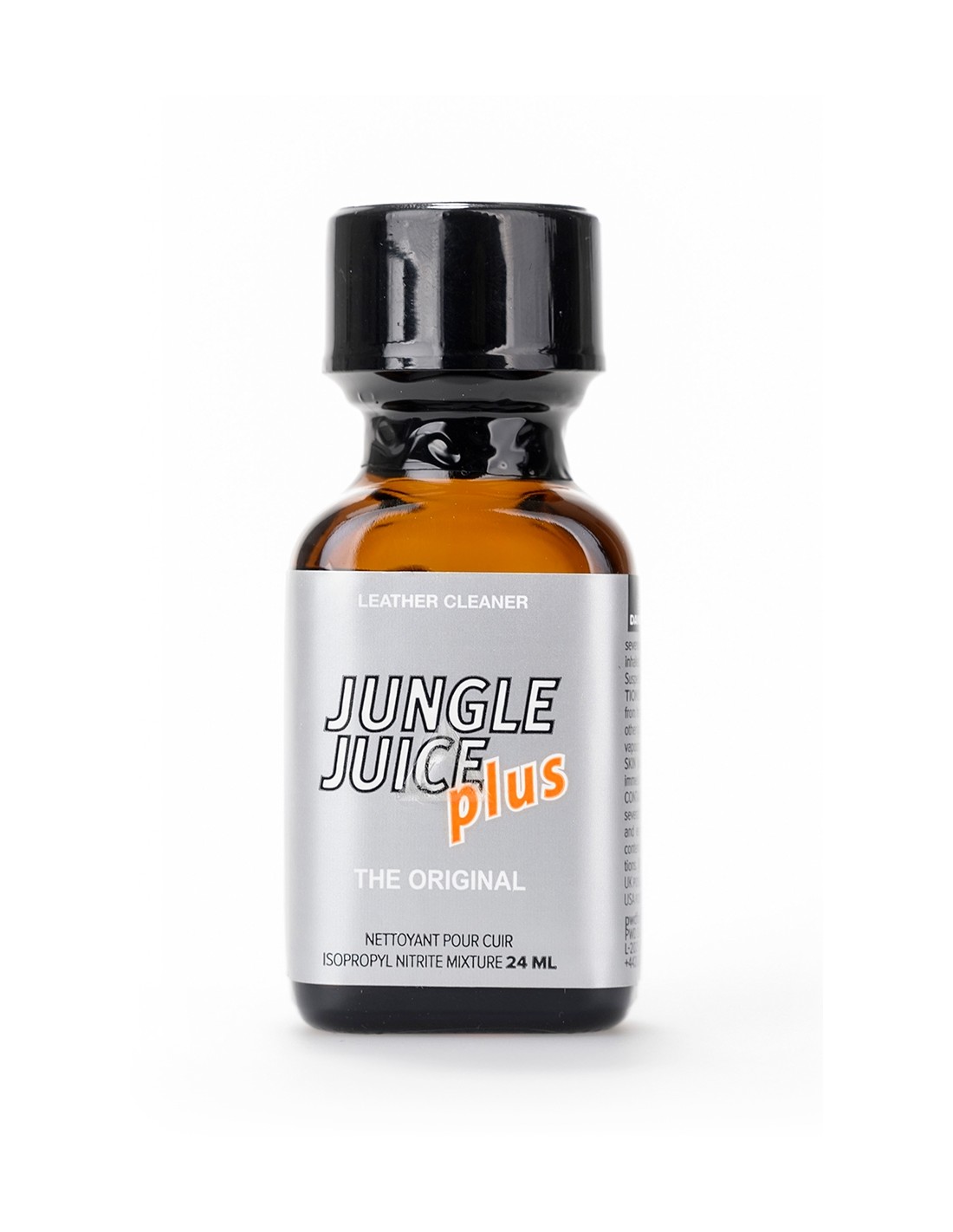 poppers Jungle Juice Plus, Une déclinaison du célèbre Jungle Juice, un arôme intense et de haute qualité à base de nitrite d'isopropyle, en bouteille de 24 ml.