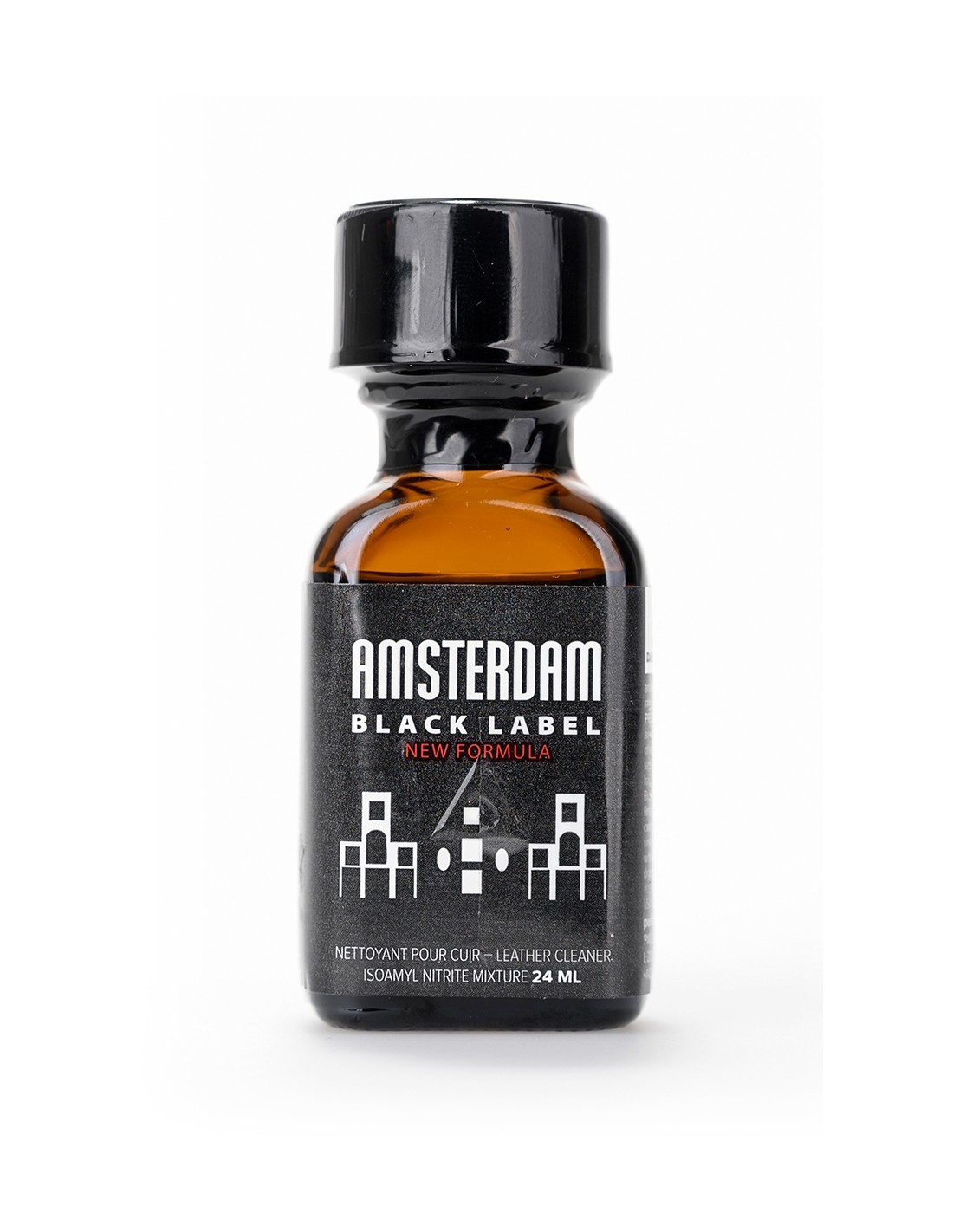 Le poppers Amsterdam dans une nouvelle formule encore plus forte (à l'Isoamyl Nitrite), Black Label oblige!