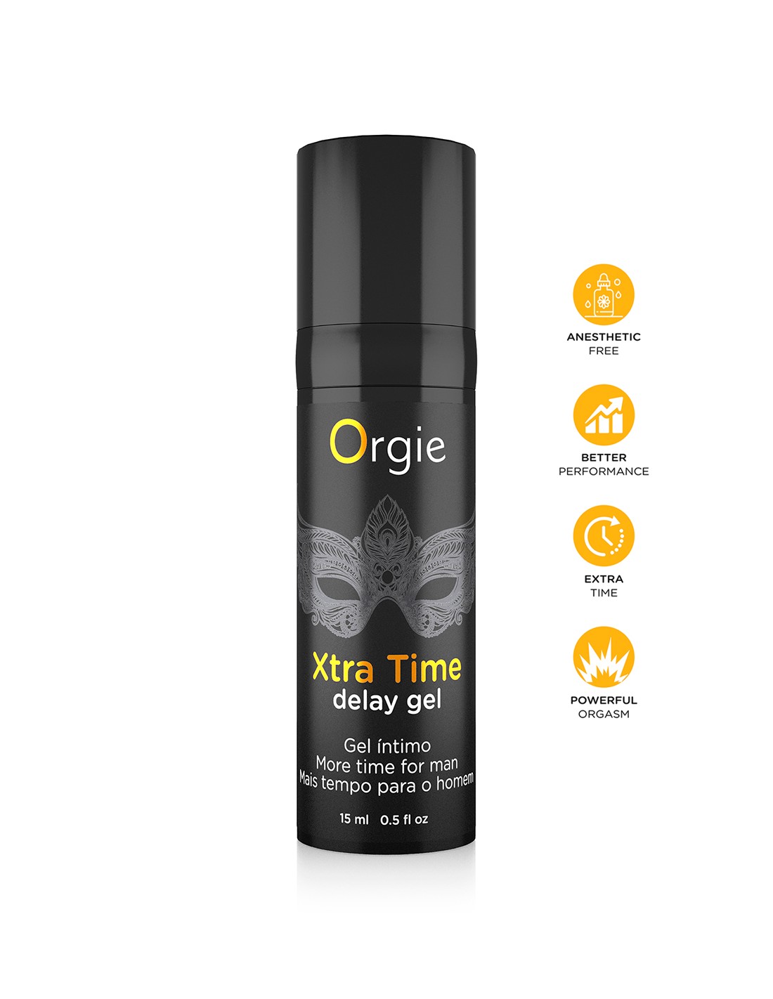 "Xtra Time Delay Gel", de la marque de cosmétique érotique Orgie, est un gel intime qui permet aux hommes de retarder léjaculation en diminuant la sensibilité du pénis.