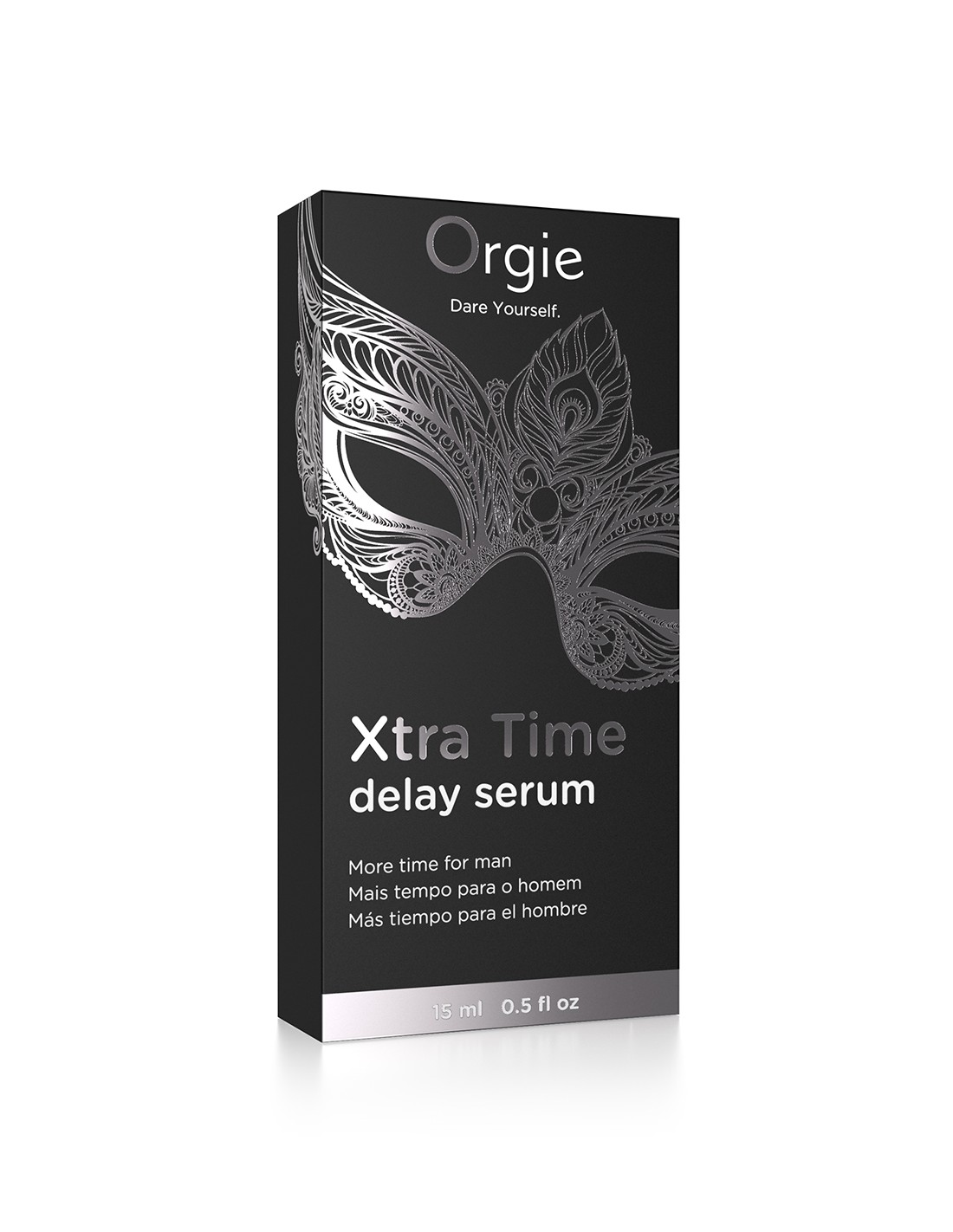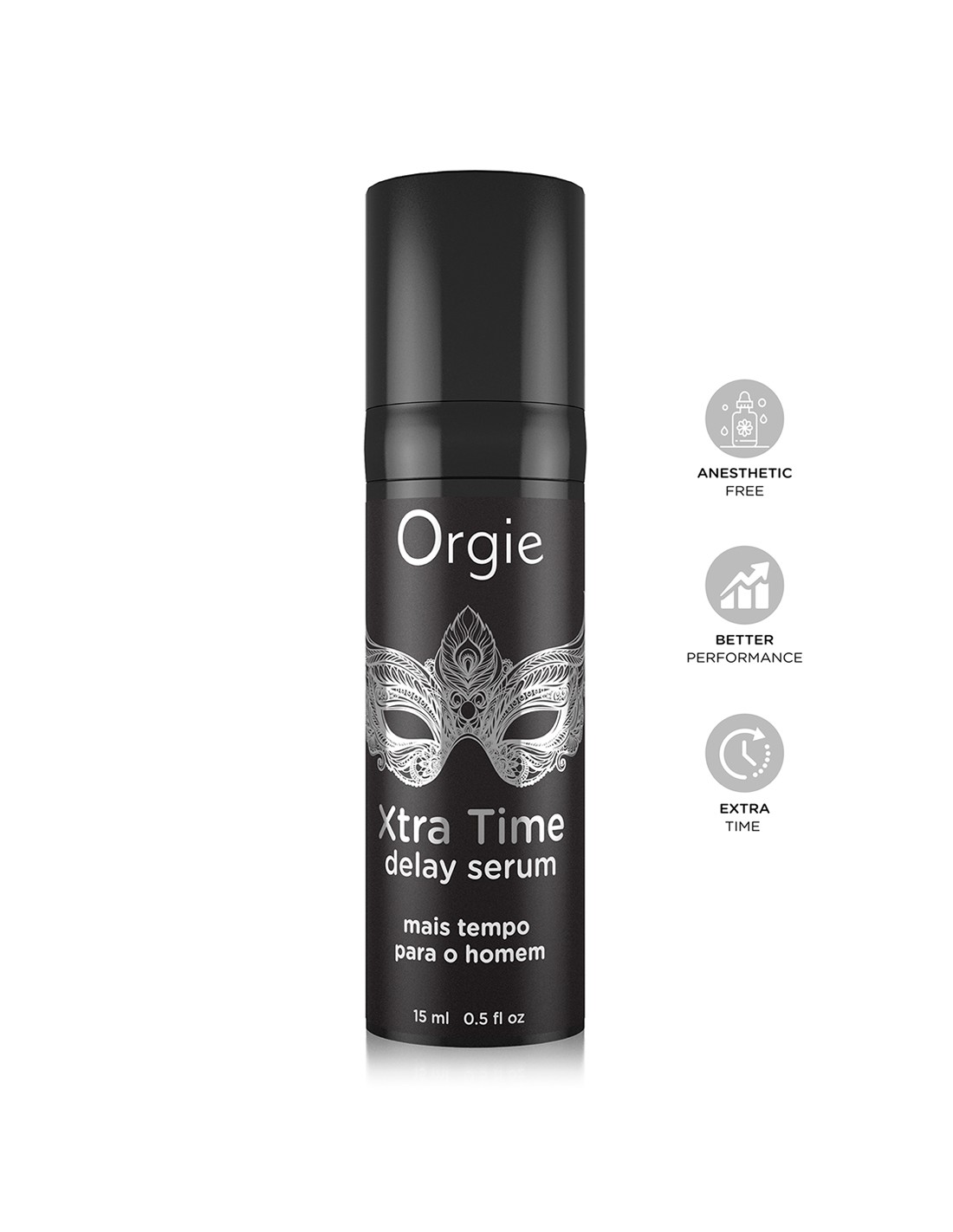 "Xtra Time Delay Serum", de la marque de cosmétique érotique Orgie, est un sérum intime au silicone qui permet aux hommes de retarder léjaculation.