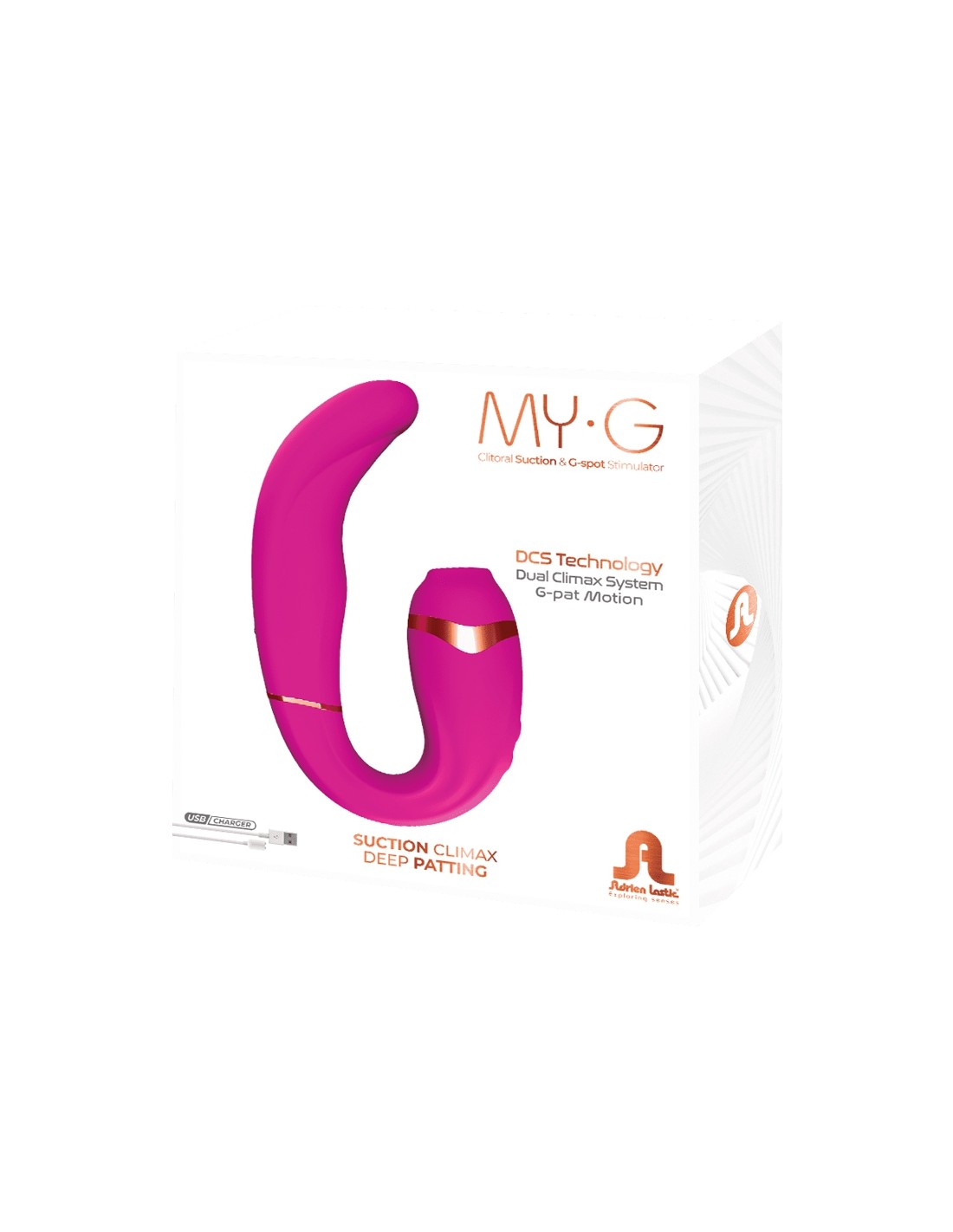 My.G d'Adrien Lastic est un Double stimulateur dédié au plaisir féminin avec stimulation par succion sur le clitoris et stimulation du vagin (point G) par vibrations et tapotements.