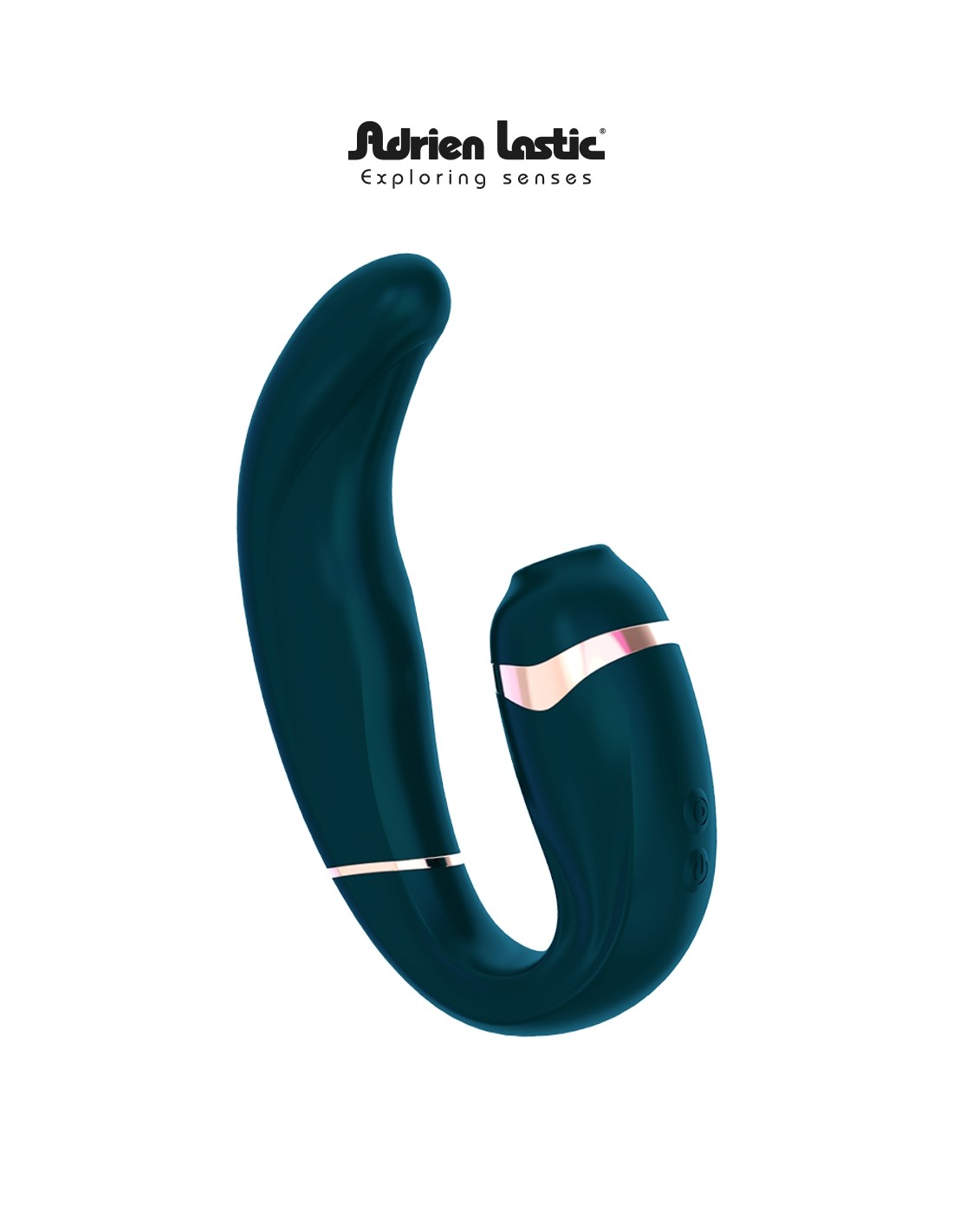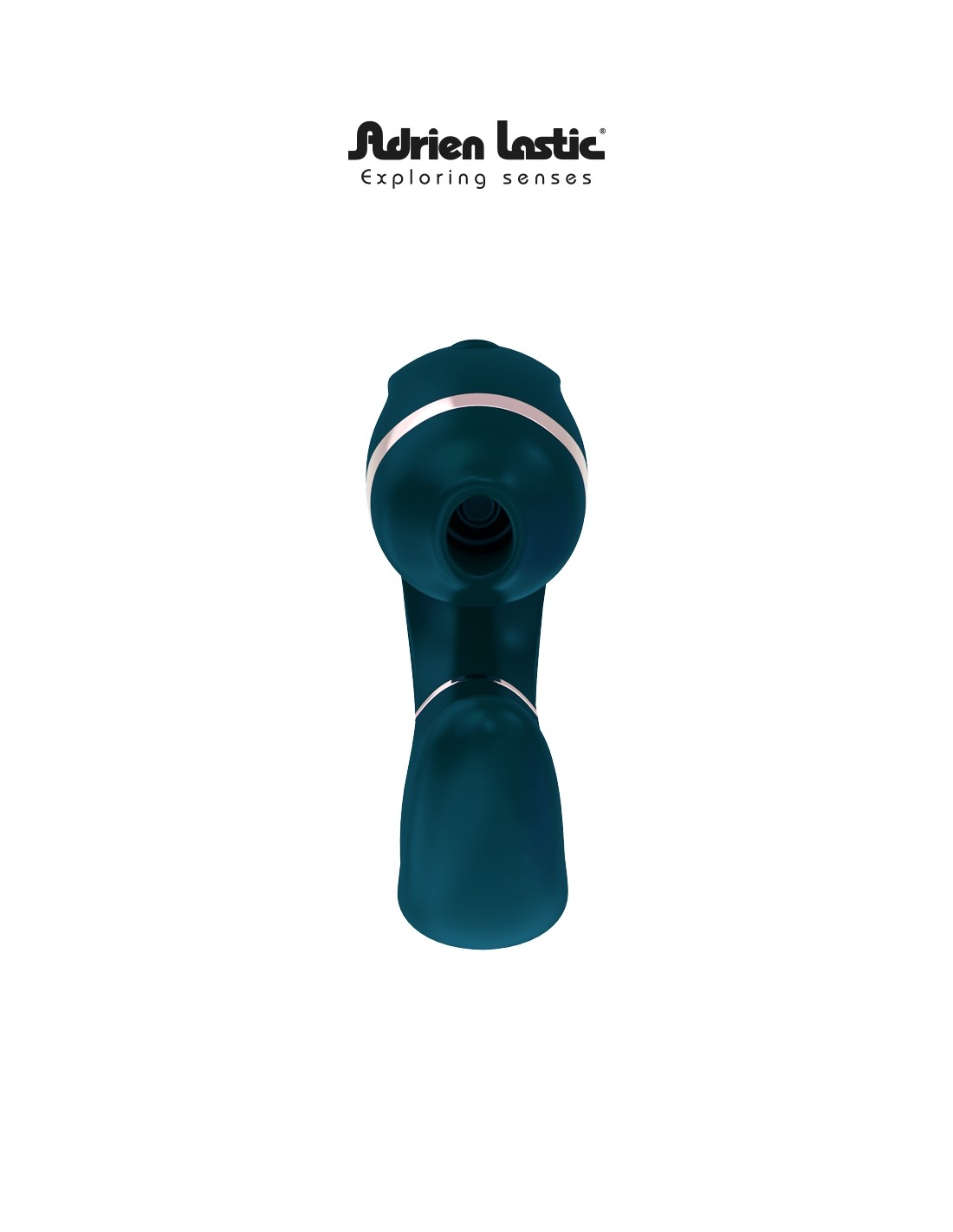 Double stimulation par succion sur le clitoris + stimulation du vagin (point G) par vibrations et tapotements (coloris vert).