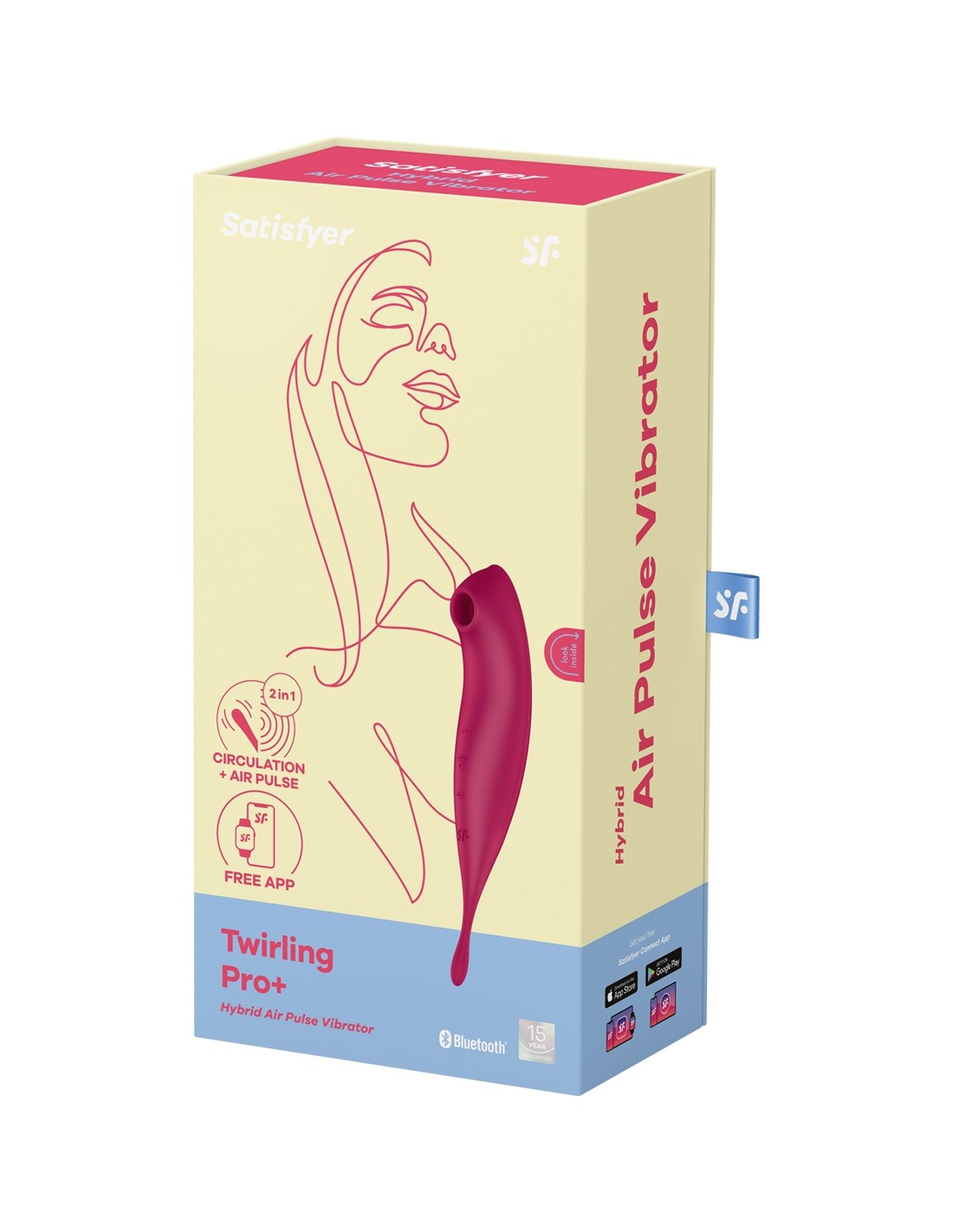 Le stimulateur deux en un Twirling Pro Connect Approuge de la marque Satisfyer est un puissant stimulateur connecté destiné d'un côté à procurer une stimulation par vibrations précise et intense de toute zone érogène, tandis que l'autre extrémité stimule le clitoris par des ondes de pression.