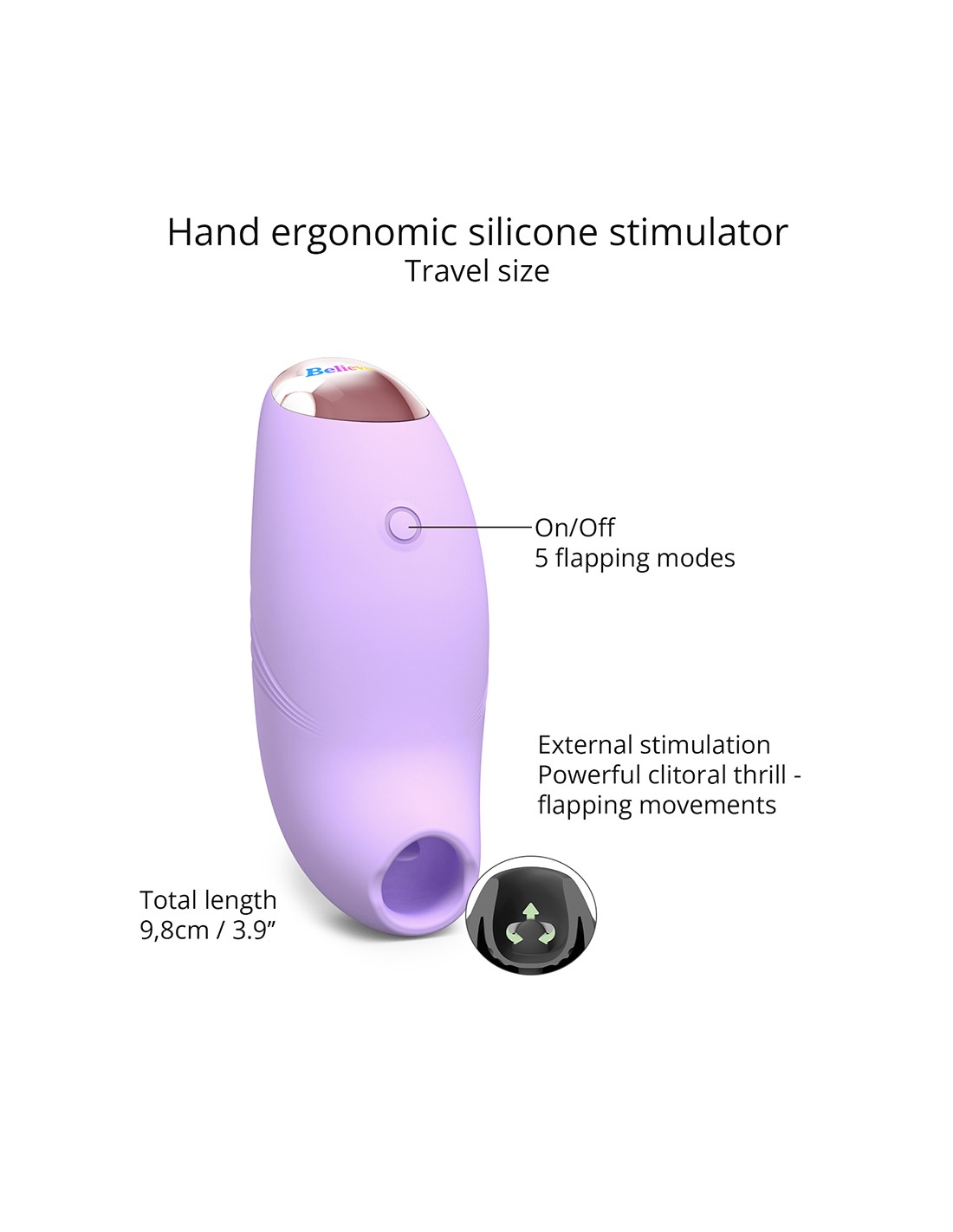 Believer est un condensé de puissance dans un corps parfaitement ergonomique. Doté de la flapping technologie, ce stimulateur clitoridien vous offre sa langue experte, cachée dans son embouchure vibrante. Ses 3 types de mouvement et ses 5 intensités vous permettent une stimulation intense et ciblée, exactement à votre goût.