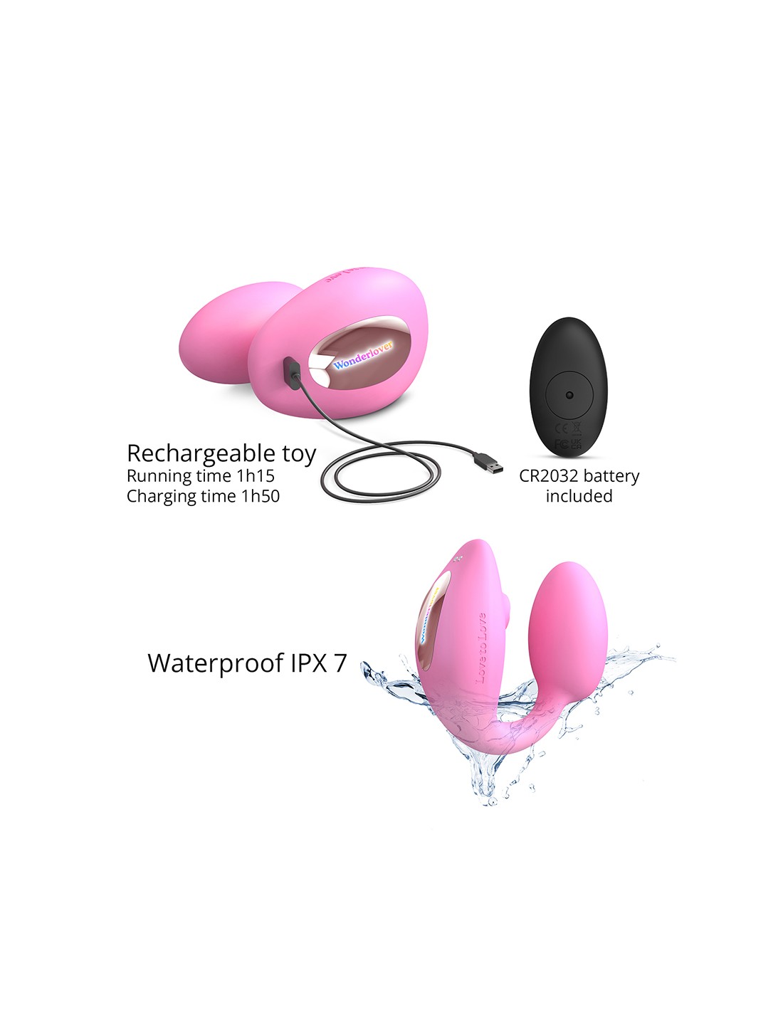 Pour soffrir un moment complice, mettez la télécommande entre de bonnes mains et demander à ce que lon vous surprenne. Sensations garanties, sous la douche ou dans un bain, Wonderlover est waterproof.